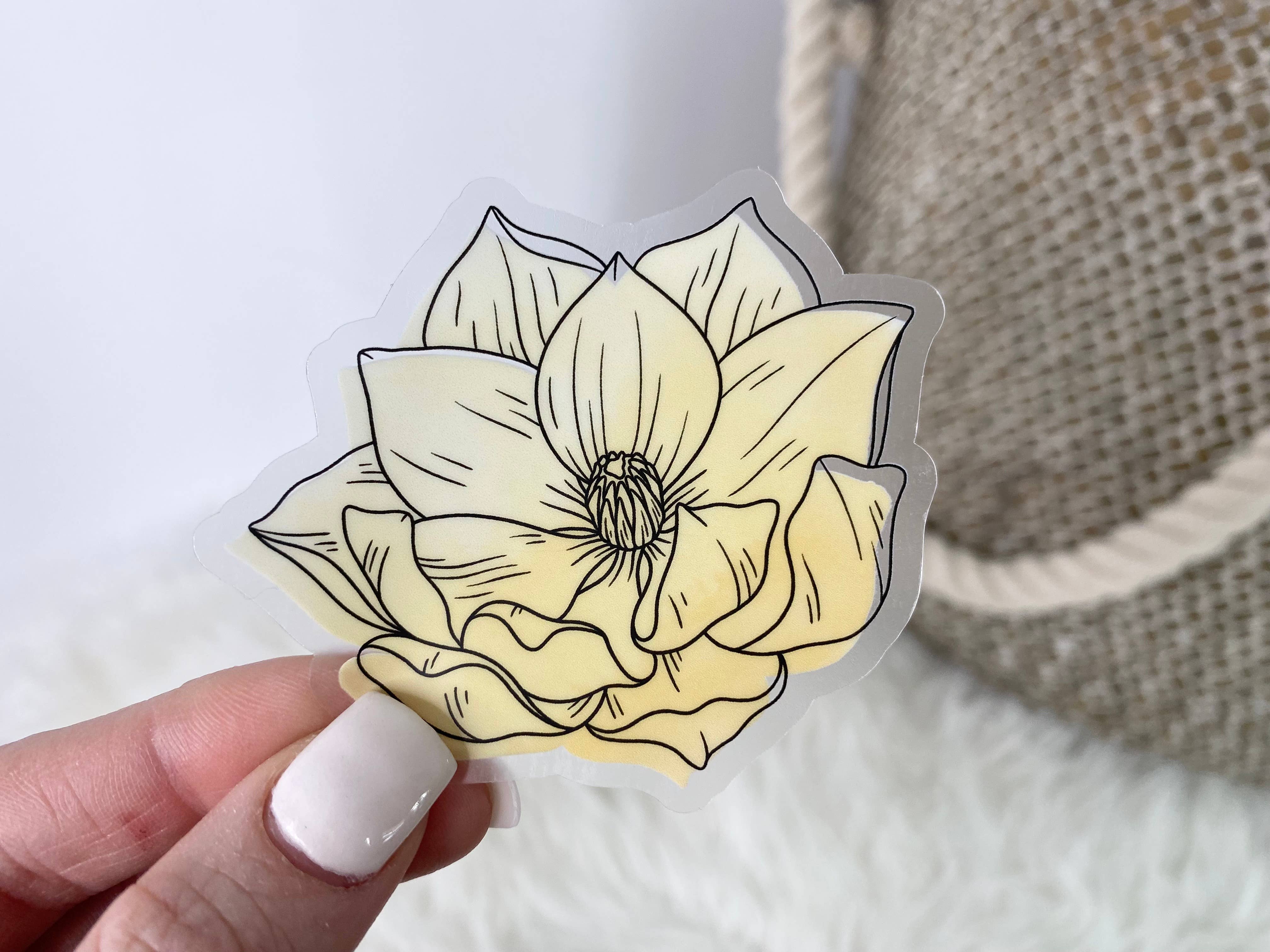 Clear Daffodil and Chrysanthemum Sticker, 3x2in.