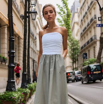 MIMI TUBE DRESS (WHITE / TAUPE COTTON)- VD3330