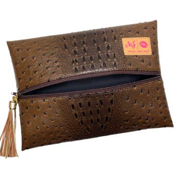 This stylish and functional vegan patent leather train case is part of our makeup and travel collection. It features a sleek quilted fabric design and a top carrying handle. The wide zipper closure provides easy access, making it perfect for organizing makeup, toiletries, and hair accessories. The spacious interior is lined with hot pink with a clear protective fabric that is easily wipeable. The top of the train case has a zippered pouch and elastic holders for brushes, lipsticks, and more. The body of the case has two elastic pockets for added organization. 5.5" tall by 9" wide 7" wide
