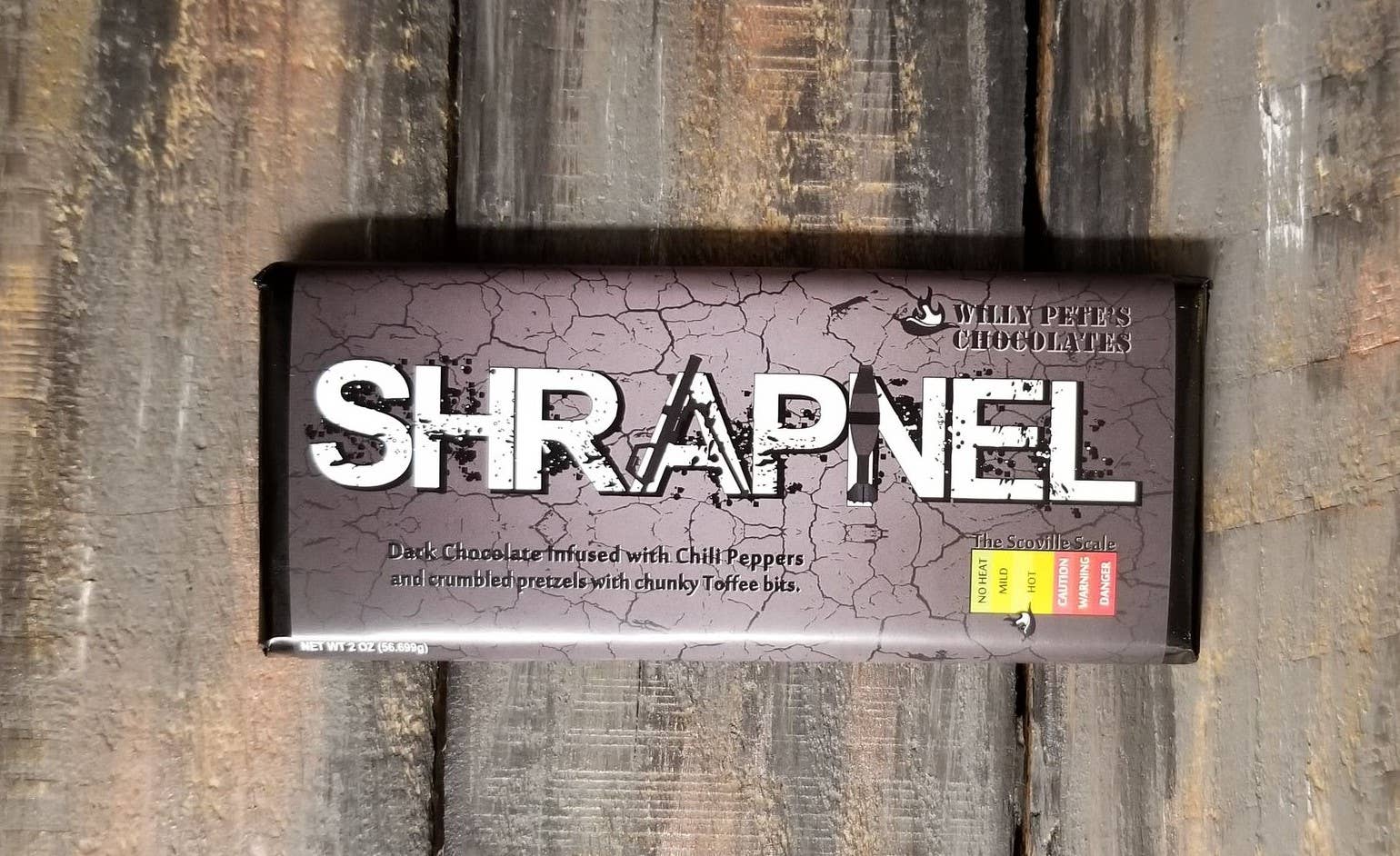 Love a chocolate bar with a crunch? If so, you’ll enjoy Frag Out ~ milk chocolate infused with peanut butter, rice crispies, peanuts and our home grown and dehydrated Chili Peppers.