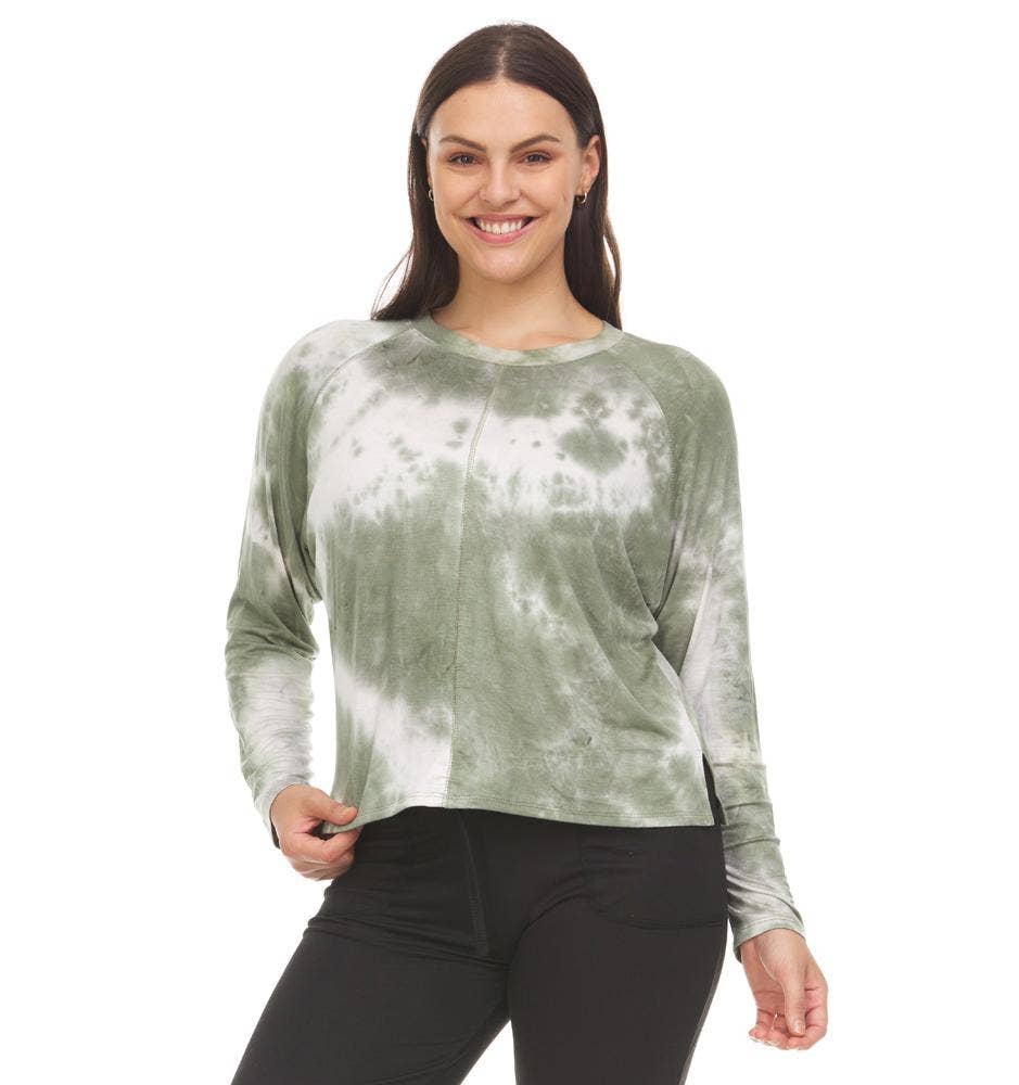 WHOLESALE ",,.....SI-25676 PLUS SIZE FRENCH TERRY ACID WASH RAW EDGE RAGLAN