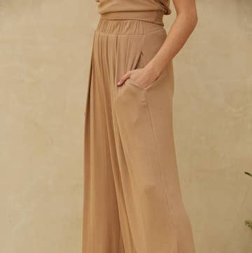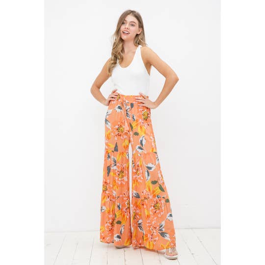 31864P - Rayon Wide Tiered Shirred Leg Elastic Tassel Pants