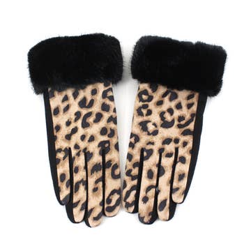 Wholesale leopard print winter gloves with button detail
