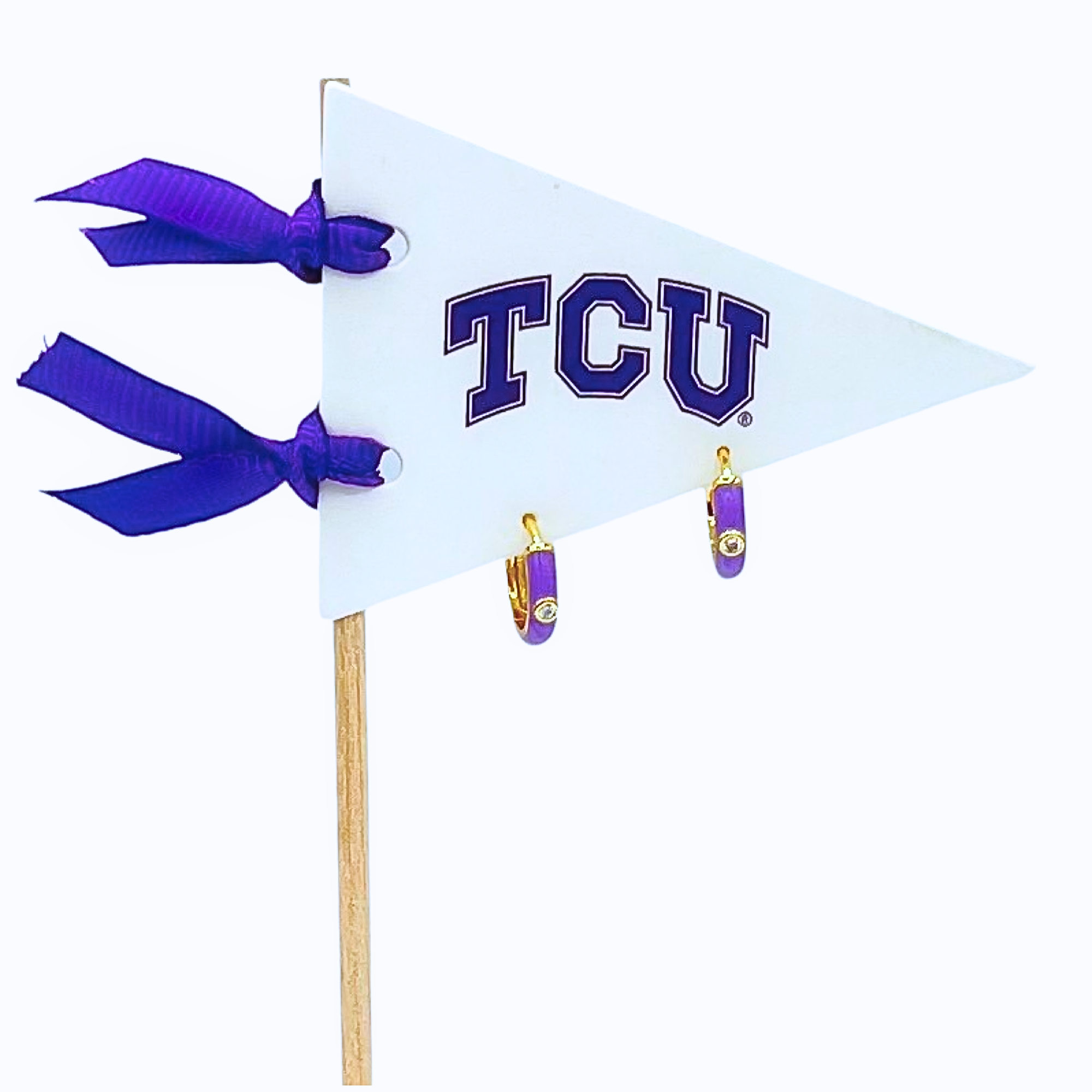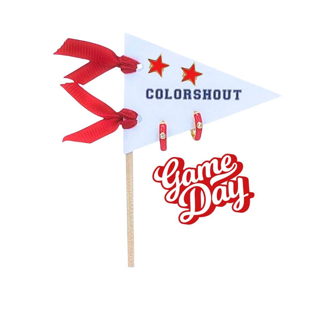 "We've got spirit, yes we do, we have spirit, how 'bout you?!" The cutest way to show off your school spirit by wearing your team colors every day with our heart stud earrings. Materials: Sterling Silver plated in 18k yellow gold and Colorful Enamel hoop earrings with Zircon stone. Hinge opening. For pierced ears.