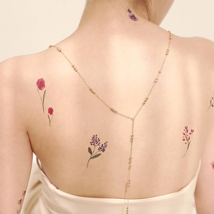 Pastel Floral Butterfly Temporary Tattoo Realistic tattoo design Long lasting Perfect for any occasion Designed in London Easy to apply: - Cut out the desired design - Peel off the plastic - Place design face down onto clean skin - Wet with water and peel paper off! Ta dah! To remove: - Soak tattoo with baby oil, or oil based make up remover, to allow the adhesive to dissolve. Ā - After 10 seconds, remove the oil with a cotton pad. - Be gentle when removing, do not rub the skin hard particularly around the eye area.Ā Each pack contains 2 sheets of design?Metallic and colour, 4" x 4"
