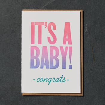 SKU: BB-010 Made in United States Color: Green and Pink Finish: Letterpress Is Set: Individual Occasion Theme: Baby Shower and Congratulations Recipient: Everyone and New Parents Weight: 9.07 g (0.32 oz)
