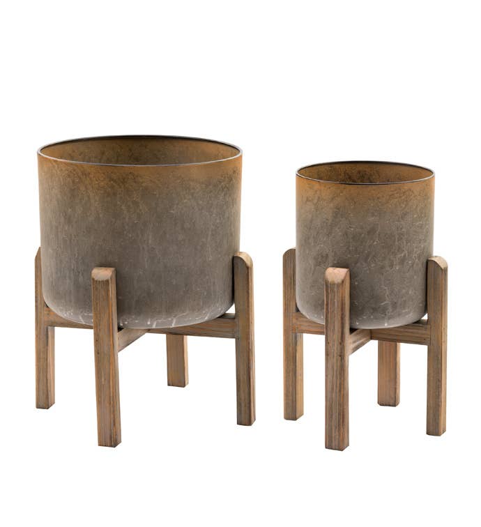 Marble Ceramic Planter with Wood Stand