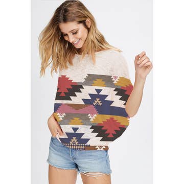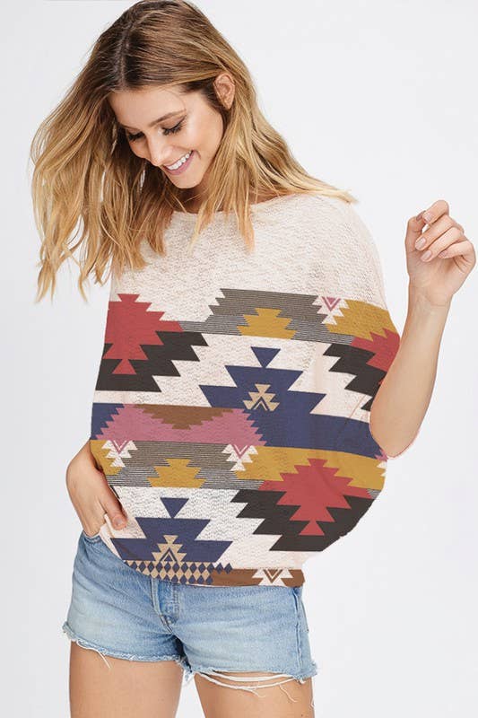 TA1966 Southwest Aztec Print Knit Top