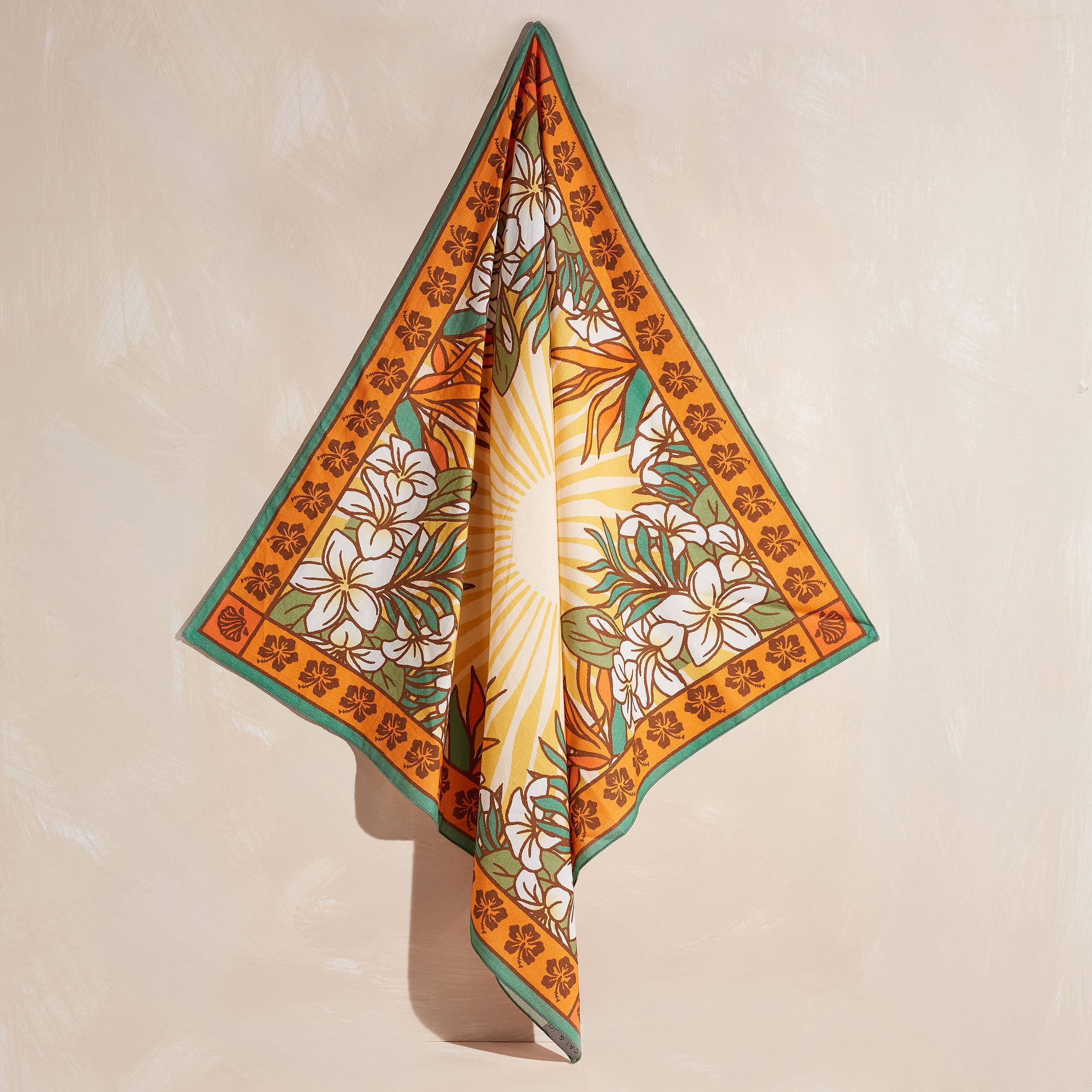 Accessorize your style with this bold, colourful, printed bandana featured in a classic cai & jo design inspired by the tropics of Capricorn. Use as a face covering, tie into your hair, use as a neck scarf or anything else you can think of! • 55 x 55cm (21" x 21") • 100% Organic Cotton, sustainably sourced and GOTS Certified • Ethically made by hand in India Care: Can be machine washed. Line or tumble dry. Do not expose to high heat or bleach