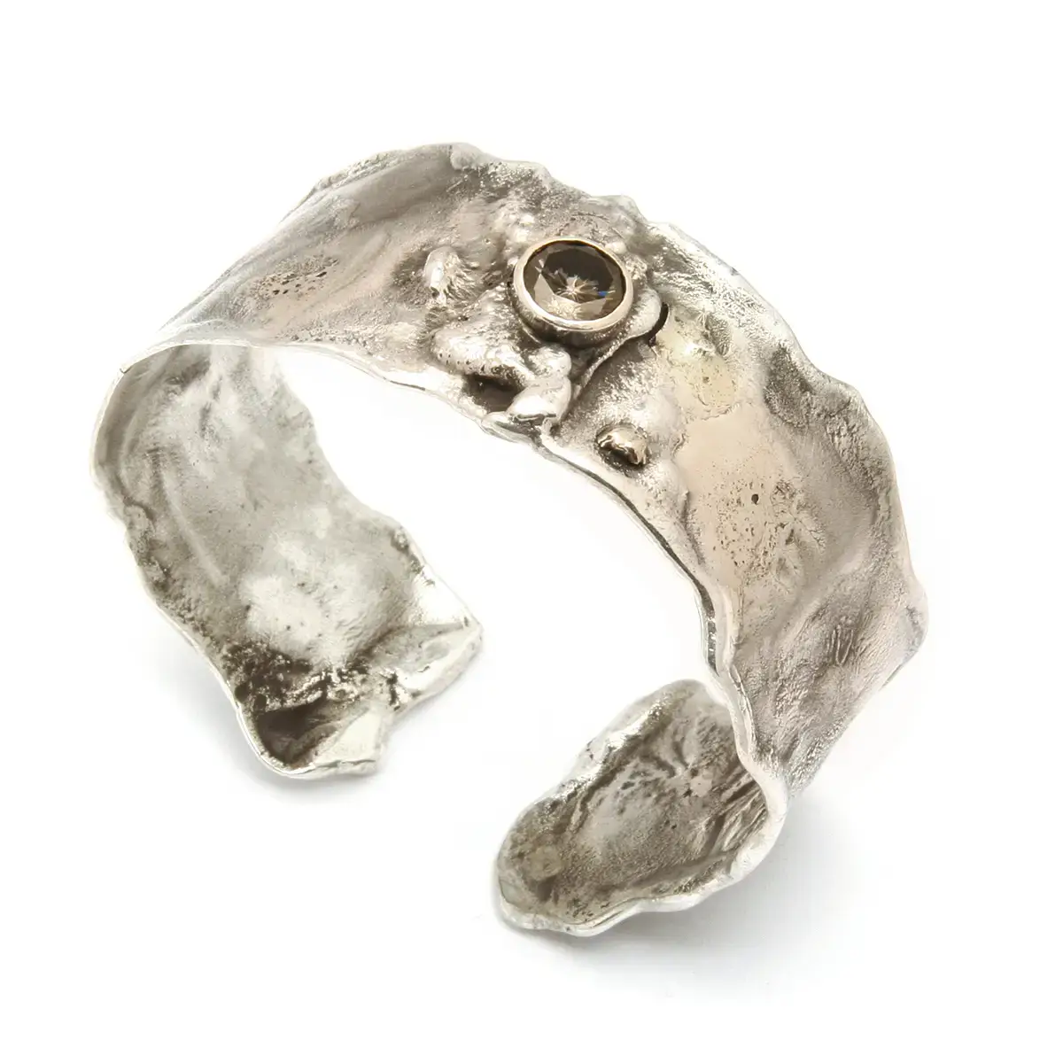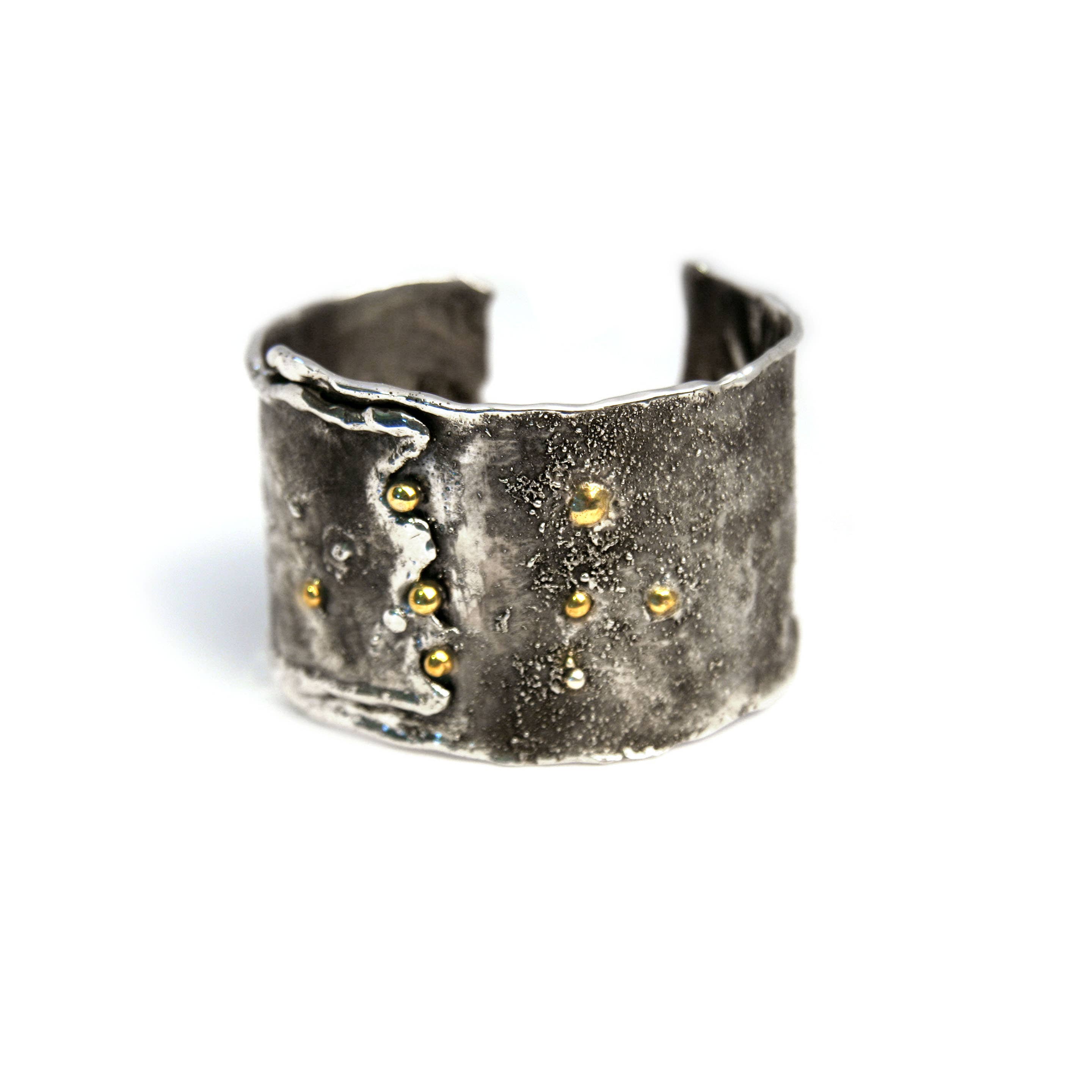 Sterling silver ring 10 mm wide with 4 mm bezel set stone and patina finish. Available in sizes 4-12