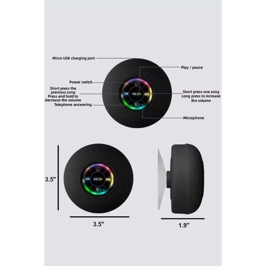 The silicone waterproof speaker has control buttons and dedicated suction cup for showers, bathroom, pool, boat, & outdoor activities. Fully waterproof, great sound quality, & long lasting charge. Suction mounting sticks to all smooth surfaces allowing for hands-free calling. Dimensions: 3.75" x 3.5" x 2.5" WARNING: This product contains chemicals known to the State of California to cause cancer and/or reproductive harm. For details, visit www.P65Warnings.ca.gov/product