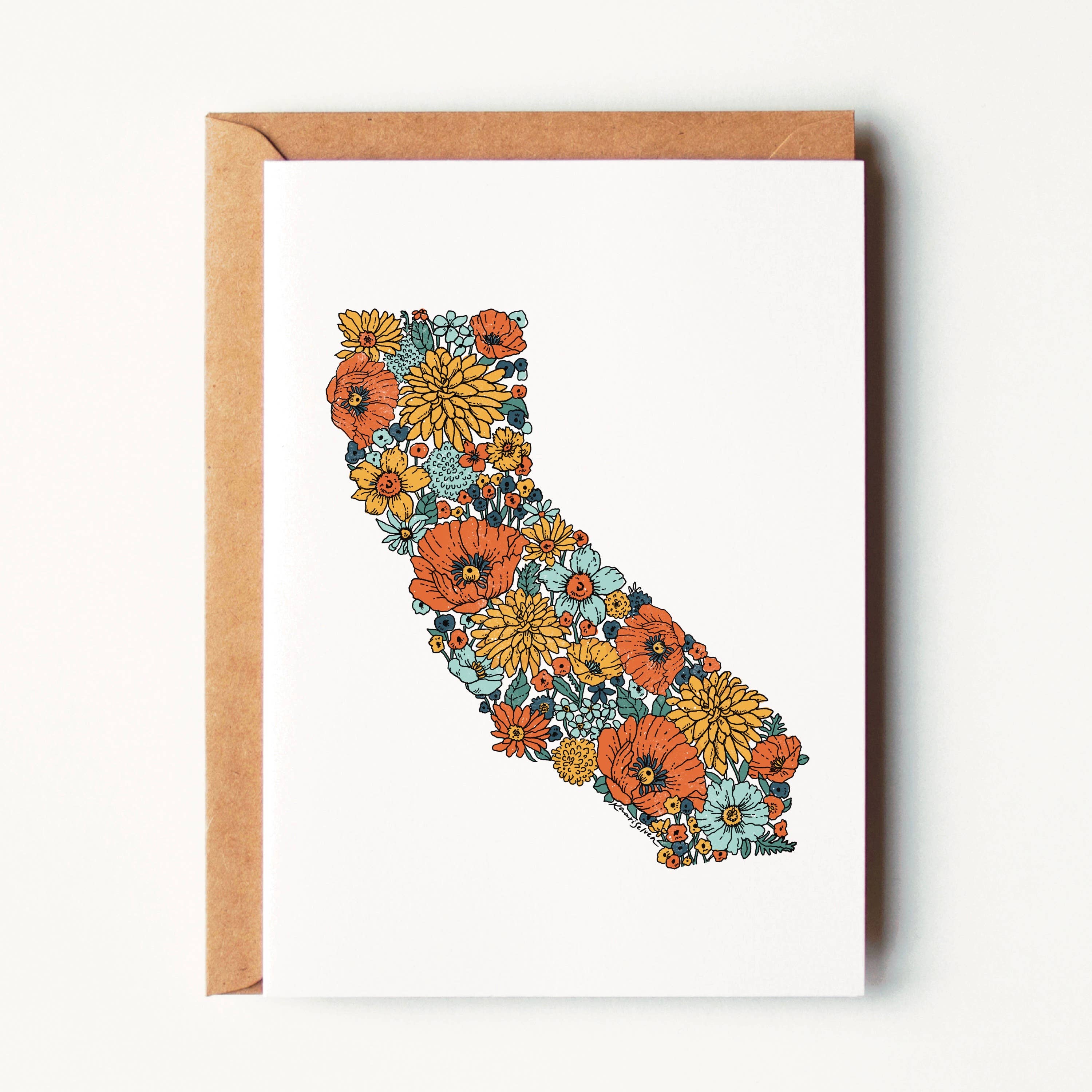 Greeting card includes envelope shown. Risograph printed with vegetable-based ink on 100% PCW recycled card stock and packaged in sealed compostable sleeves. Blank inside. A2 size (4.25” x 5.5" folded).