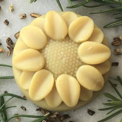 This organic shampoo bar conditions roots & scalp adds shine and strengthens all hair types with pure & natural ingredients like vitamin c, amla, bhringraj, and shikakai also used in ayurvedic medicine. And it smells like a cinnaroll. Size: 3.5 - 4oz.