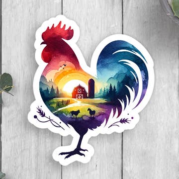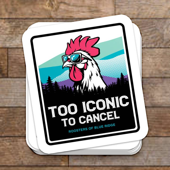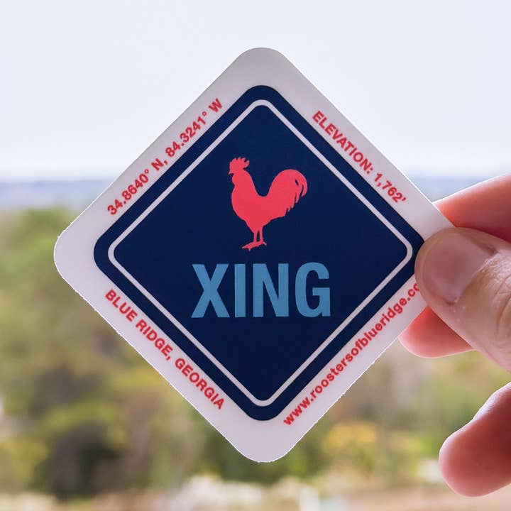Join the cool roosters on the block with Roosters of Blue Ridge stickers. Stick them on your water bottles, laptops, notebooks, windshield, baby sister, cousin, or dog... stick them everywhere! This sticker features our "Mountain Proud, Rooster Loud" slogan. Product features: On average, the stickers are 3 x 3" Thick, durable, vinyl stickers With each and every item sold, a portion of the proceeds go towards the caretaking of the roosters in Downtown Blue Ridge. Product inspired by: Frank (the rooster)