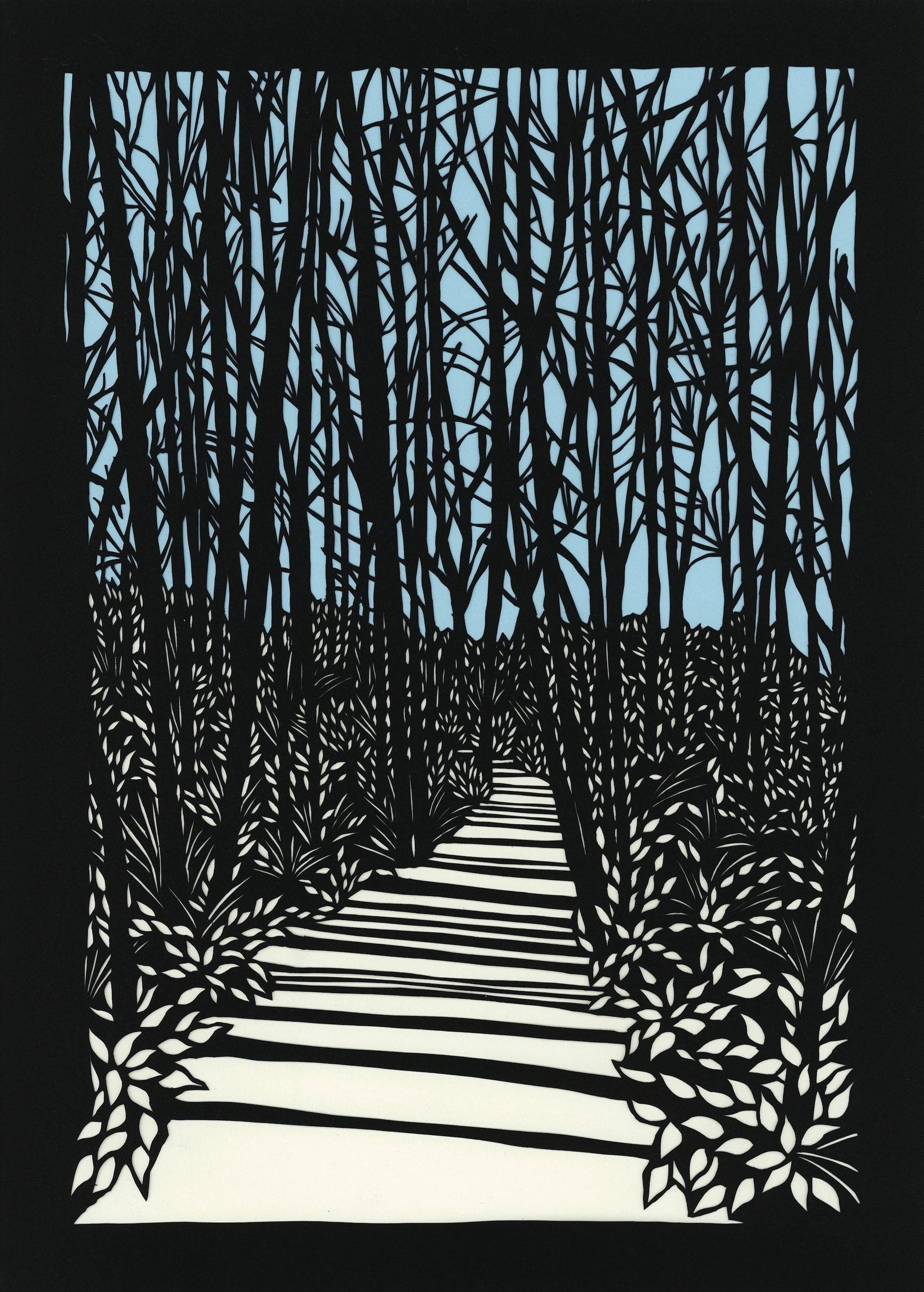 Looking for a uniquely beautiful greeting card that's both eco-friendly and locally crafted? You've come to the right place! These blank greeting cards come in the standard A6 size with white envelopes. Each card is a reproduction of one of Nan Onkka's timeless woodcut prints. The original woodcut was hand-carved by Nan in her home studio in Grand Marais, Minnesota. Her artistic skill and attention to detail shine through in every card, making them truly one-of-a-kind. Whether you are celebrating a milestone, mourning a loss, or simply saying hi, these blank cards are perfect to have on hand for any occasion. Each greeting card is printed using sustainable off-set methods by a green certified printer in Minnesota. The A6 card measures 4.5 x 6.25" and comes with a matching white envelope. The card's exterior features a sophisticated satin finish, while the uncoated interior provides a smooth surface that is easy to write on. The optional clear eco sleeve is derived from plant-based PLA (Polylactic Acid) and is certified compostable. Details: * Single blank A6 card (4.5 x 6.25") with matching white envelope * Professionally printed on 340gsm white paper-Satin finish on the exterior; uncoated interior (easy to write on!) * Locally printed in Minnesota by a green certified printer * Eco-friendly paper and packaging! Suggested retail price: $5.00 (With Clear EcoSleeve) / $4.75 (NO Clear EcoSleeve) Keywords: White Pine, Gunflint Trail, Scenic Road, Scenic Highway, Walk, Stroll, Birch, Aspen, Poplar, Pine, Spruce, Fir, Tamarack, Cedar, Maple, Oak, Prairie, Wildflowers, Flower, Woodland, North, Northwoods, Up North, Minnesota, Wisconsin, Michigan, Upper Peninsula, Illinois, Maine, New Hampshire, Vermont, Massachusetts, New England, Pennsylvania, Ohio, Indiana, Virginia, Kentucky, Tennessee, North Carolina, Iowa, Colorado, California, Oregon, Washington, Texas, Ontario, Canada, Manitoba, Grand Marais, North Shore, Minnesota Made, Minnesota Maker, Boreal Forest, Woman Artist, Woman Owned, Printmaking, Calm, Peace, Pastoral, Encouragement, Bereavement, Country, Environmental, Winter, Spring, Summer, Fall, Camping, Boundary Waters, BWCA, National Forest, National Park, Lake Superior, Lake Michigan, Great Lakes, Mississippi River, Canoe, Kayak, Hiking, Backpacking, Trail, Roots, Mountains, Biking, Beach, Outdoors, Nature, Sympathy, Encouragement, Sunset, Sunrise, Shoreline, Coast