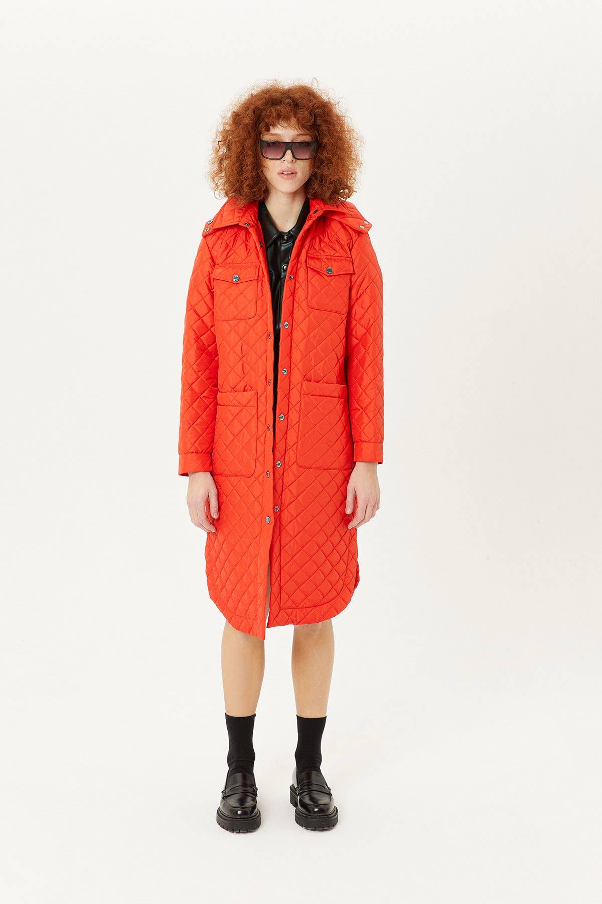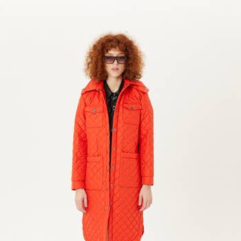 A playful interpretation of outerwear. This jacket is crafted from pure cotton with a quilted puff construction that brings volume and light warmth. Printed in a classic gingham pattern, it is cut to a relaxed silhouette with a high neckline and discreet fastenings for a modern finish. Pure cotton with quilted texture All-over gingham pattern