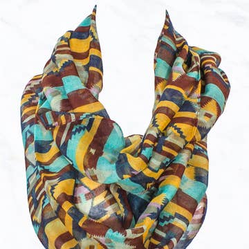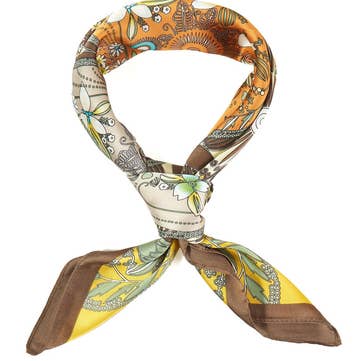 This pattern is inspired by small Meskel (Ethiopian Orthodox Cross) pendants that are molded into quatrefoil motifs with intricate designs delicately etched into the center. These pendants are abundant in Ethiopia, dating back to hundreds of years, and come in various quatrefoil shapes and designs. In this scarf, a Meskel pendant is designed with rich, contrasting colors and put into a repeat, complimented by a delicate, contrasting border pattern. Inspiration images are at the end. Scarves come individually packaged in a Kraft cardboard box, 5.25” x 7.5” x .5” with clear plastic window at front. PRODUCT SPECS & CARE Digitally printed on 100% Grade 6A Mulberry Silk 26” x 26” Machine wash on gentle cycle; air-dry Iron while damp on cool setting