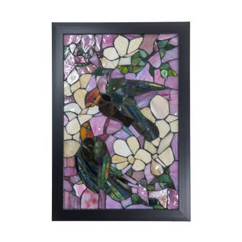 Wholesale Stained Glass Splendor - Green Hummingbird among Floral Art Tile for Vibrant Home Decor