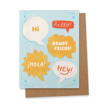 A card to say hi, hello, howdy against a jazzy flower pattern backdrop. Part of Fleurry Vision, a series of maximal flower-centric greeting cards with patterns and designs that play tricks on your eyes. Bold colors and retro typography add to the vibrance of this loud and dynamic collection. • Greeting Card • Blank inside • A2 (4.25" x 5.5") • 100# FSC-certified paper • Comes with a color-coordinated envelope • Packaged in a protective cellophane sleeve • Flat-printed • Printed in the USA
