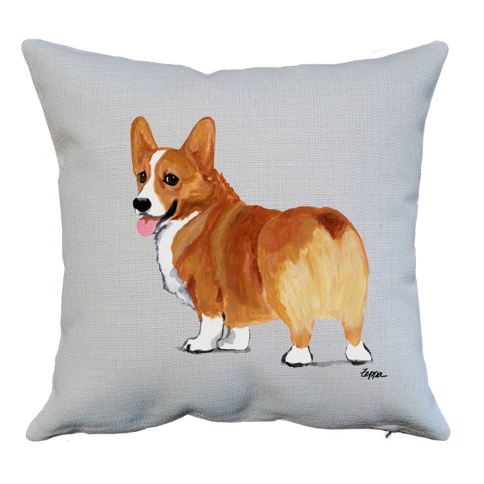 ROYAL CORGIE EMBROIDERY PILLOW 18x18" SPOT CLEAN COTTON INSERT:POLYFILL SOLD IN SET OF 2