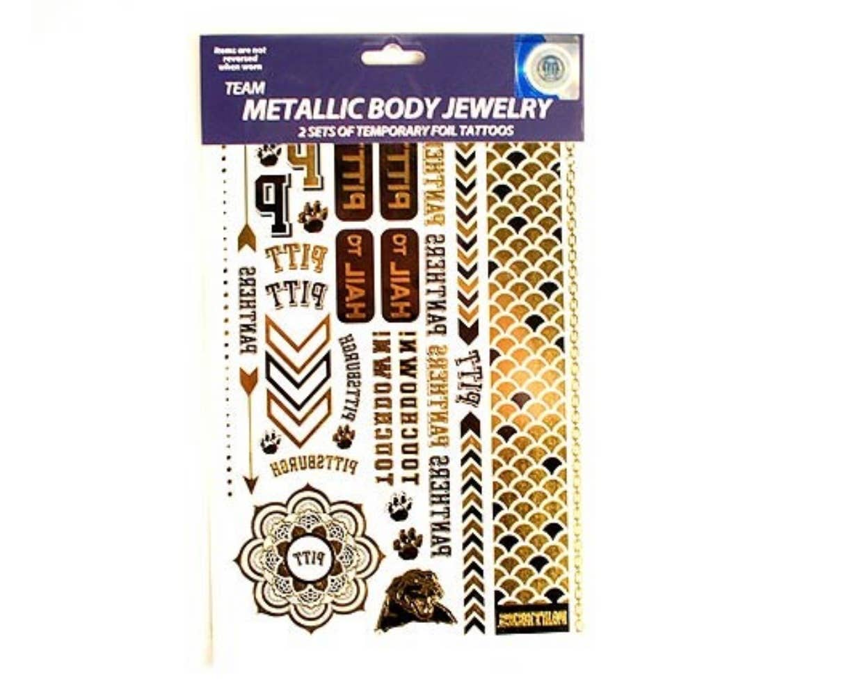 Get your glitter game face on! Ad some sparkle to your game day attire with game faces® glitter tattoos. Each package contains 4 tattoos, each approximately 1.25" x 1.25". Printed on skin safe tape they simply stick on and peel off.