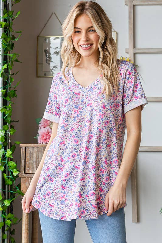 `.Washed Short Sleeve V Neck Top W Hi Low Hem