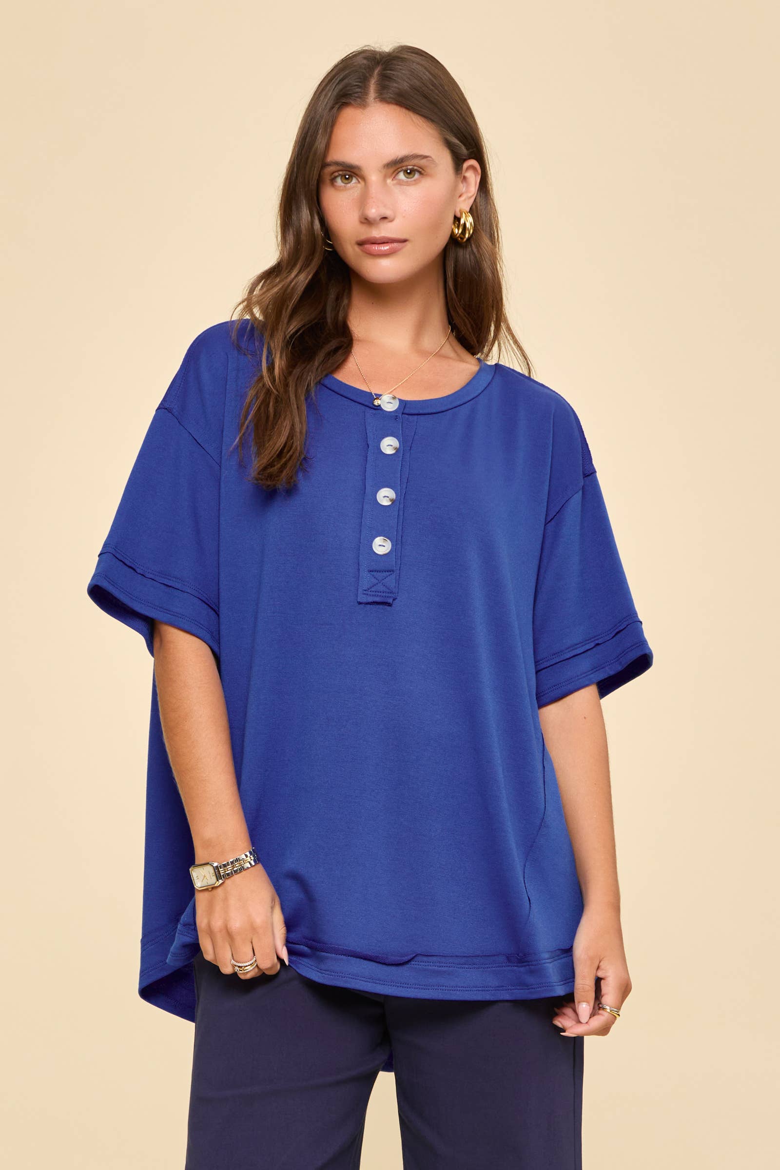 ***Image usage is allowed to the buyers who purchase from us via Faire only. SI-27465 Soft Melange Folded Sleeve Round Neck Top Material: 95%POLYESTER, 5%SPANDEX AnchorBestseller SI-27465 Soft Melange Folded Sleeve Round Neck Top (95%POLYESTER, 5%SPANDEX) BLUE GREY-178789 BLACK-178790 BRIGHT MAUVE-178791 DK RED-178793 FUCHSIA-178795 LT PLUM-178800 OCEAN BLUE-178801 IVORY-193251 H GREY-193252 ASH MOCHA-193253 SAND BEIGE-193254
