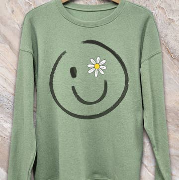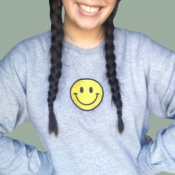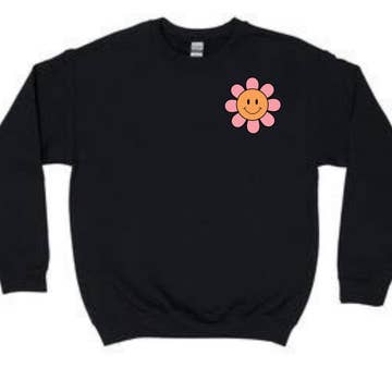 Daisy Smiley Face patch embroidered at chest with large printing on the back. Available in 4 colors. Unisex sizing, see size chart in product images. This Unisex Premium Sweatshirt has a classic crew neck, flattering unisex fit, and soft 100% cotton exterior.