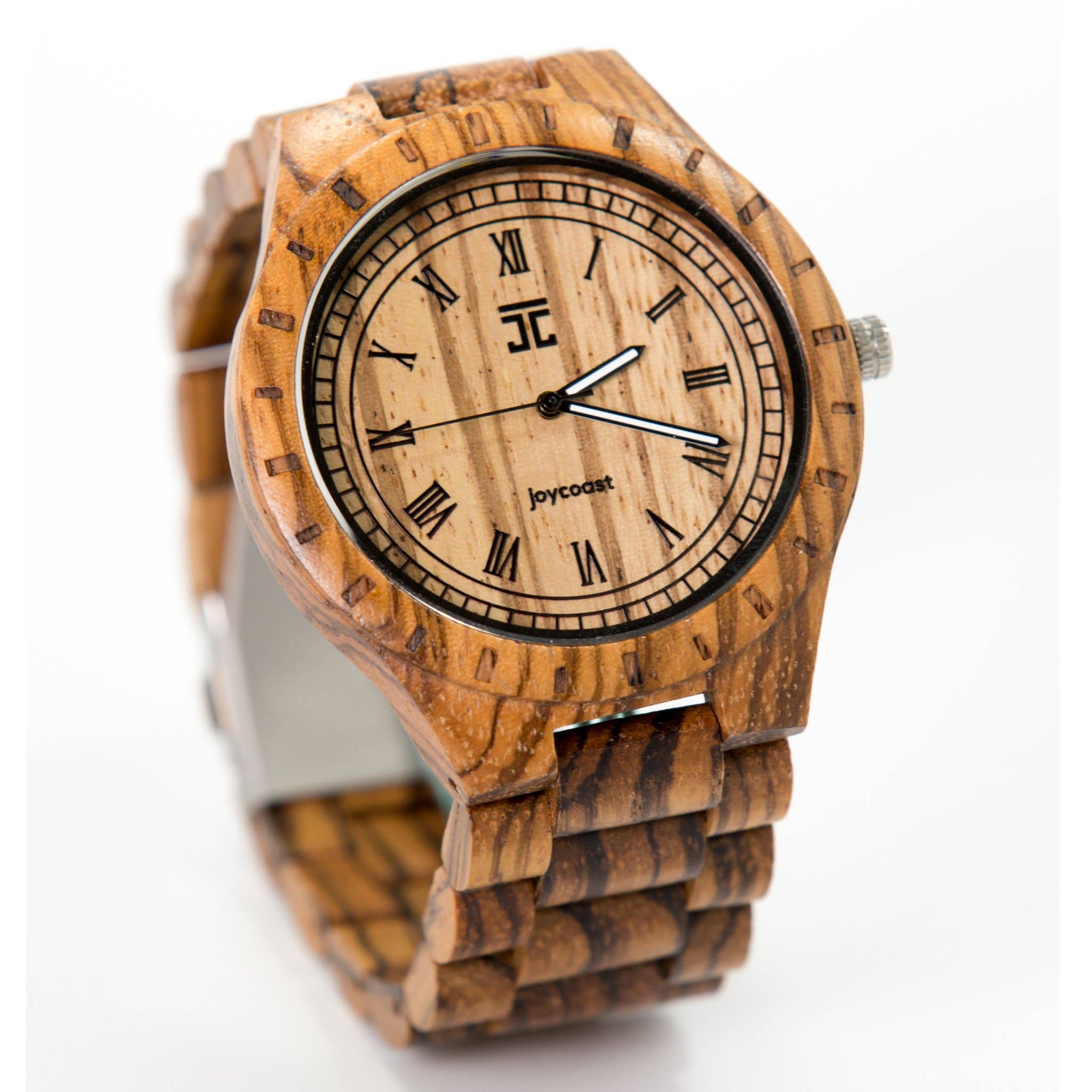 This men's wood watch shows hourly markers, second markers, and has luminescent hands on an octagonal face. This Washington Multifunction Watch is made from 100% recycled wood with stainless steel crown and clasp.