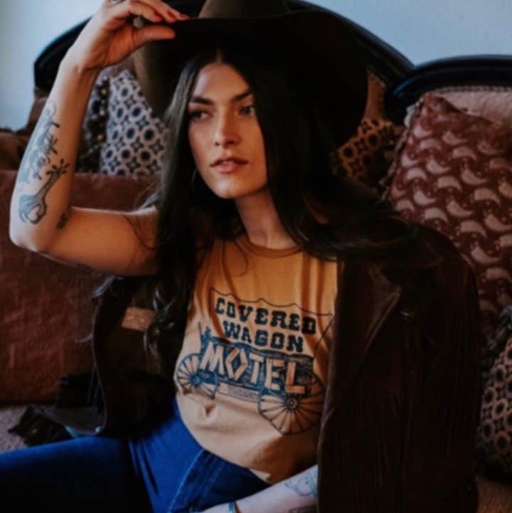 Covered Wagon Motel Womens Tee White/Blk
