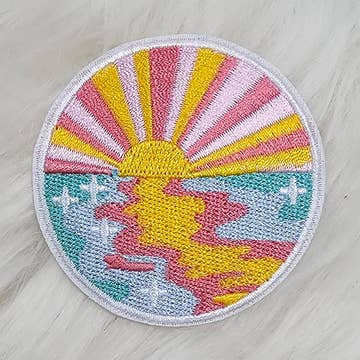 Details: 1.59"x2.07" Full embroidery on white twill Can be ironed or sewn on Packaged on a gold foiled backing card wrapped in cellophane Designed exclusively for Everyday Olive in Los Angeles, CA