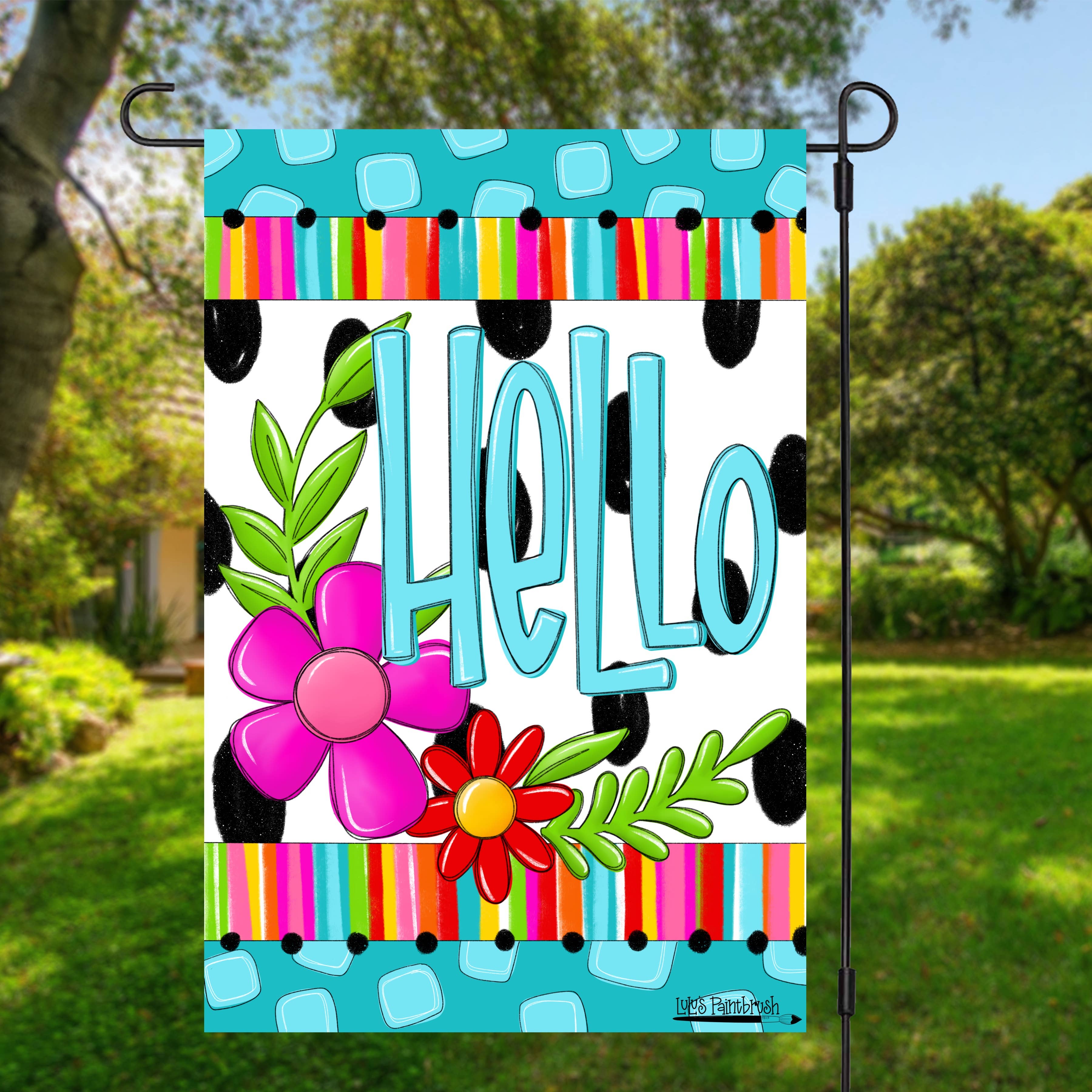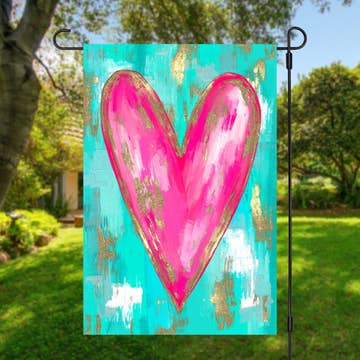 Big Love Lives Here is a reproduction of my original artwork and part of my "No Hate" Home Collection. I love using flags as my medium of choice because it allows you to not only brighten your porch with colorful art, but also share a message of PEACE + LOVE with your community. Stand out from all the greige boxes in the neighborhood and add some PERSONALITY + COLOR to your outdoor decor with my fun and uplifting garden flags! Unique art for your front yard, garden area, patio or planter... Also makes a super unique housewarming gift for a new homeowner! Flag pole not included. // DETAILS // ✺ Choose from (2) Sizes: -> Small Garden Flag 12"x18" -> Large House Flag for Flag Pole 24"x36" (with hidden hanging loop) ✺ Double Sided ✺ Printed with dye sublimation on durable, thick 100% poly poplin-canvas fabric ✺ Vivid ORIGINAL ART by artist/illustrator Courtney B.