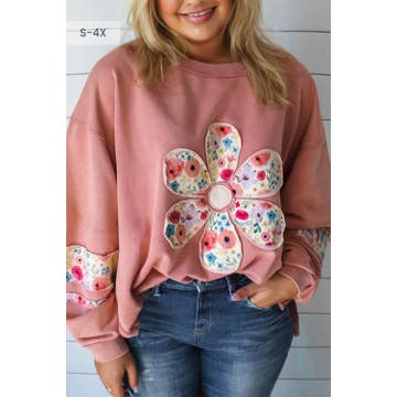LDC Rose Floral Applique Pullover Sweatshirt| S-4X