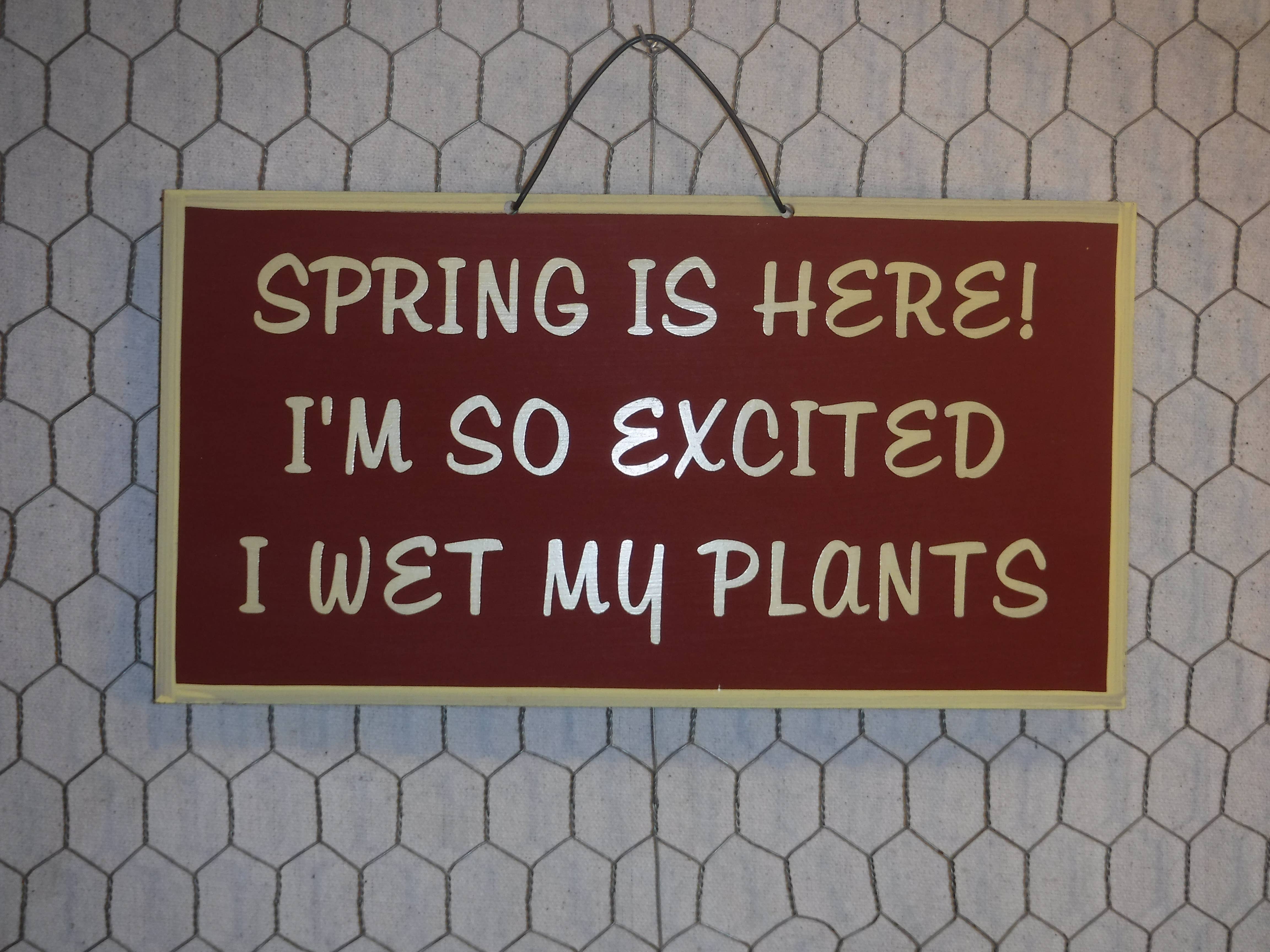 Sometimes I wet my plants. All our signs are build into a wooden box frame with a rustic touch. We strive to mix the perfect blend of rustic and modern styles that will last for years. All of our signs can be easily hung directly off of the frame or will stand upright on shelves or desks. Keywords: Spring, Spring Décor, Flower Décor, Hexagon, Easter, Garden Décor, Home Décor, Farm House, Made in USA, Handmade, Box Sign, Wall Hanging, Wood Signs, Rustic Décor.