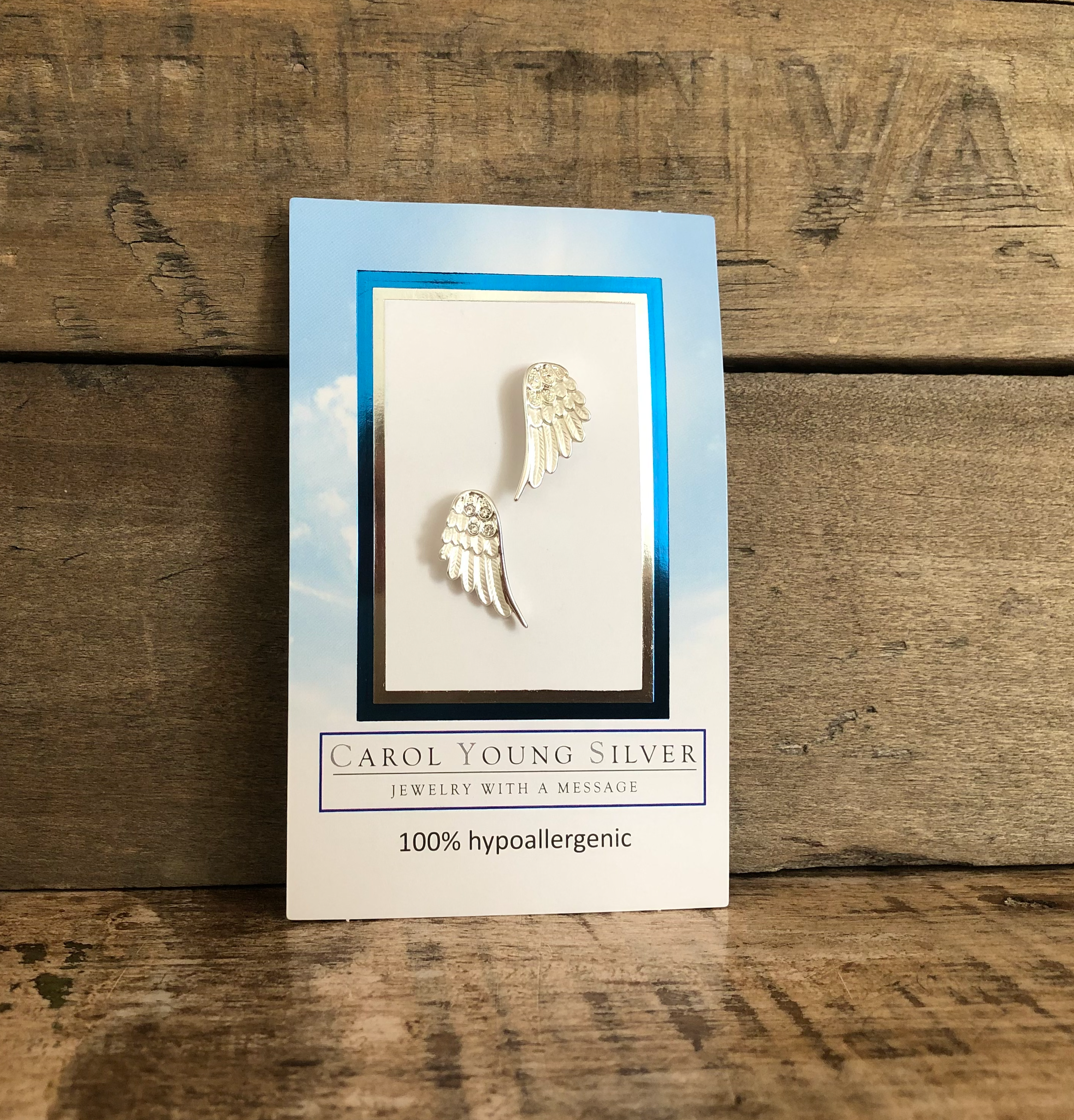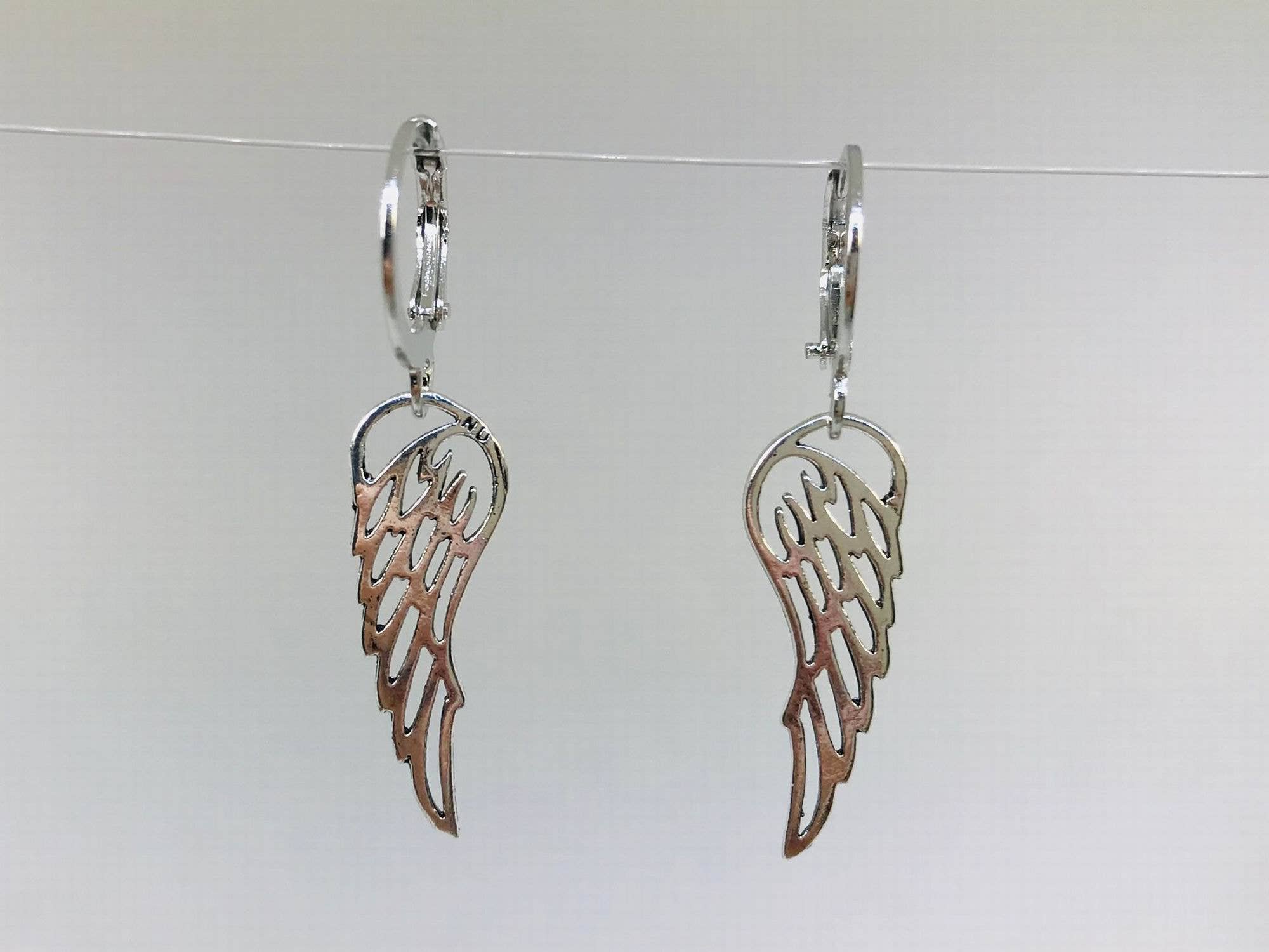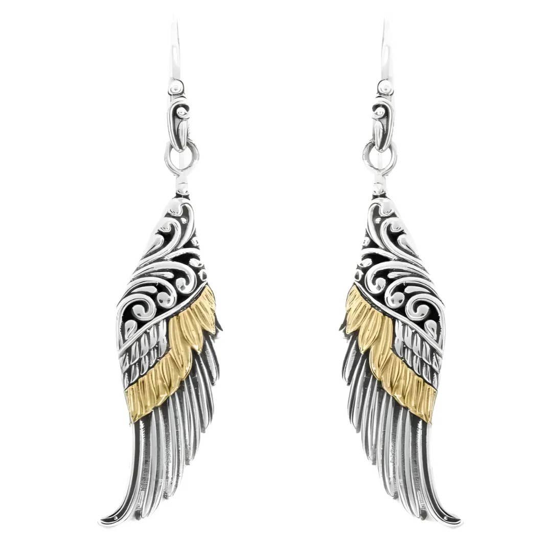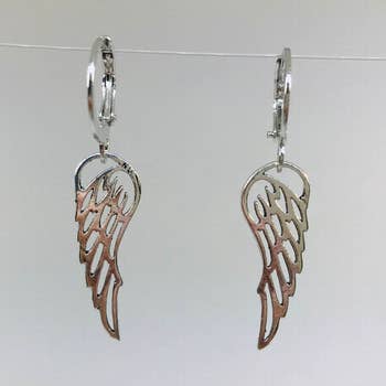 Angel Wings Earrings / 2 Tone / Drop Wire on CARD/Jewelry