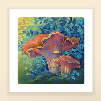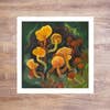 This print features colorful Golden Gill mushrooms with forest foliage and ferns. It is a reproduction from my original acrylic painting 'Golden Gills'. This is a limited edition print of 250. Each print is numbered and signed by the artist, Kristie Winther. Professionally printed by the artist using acid free heavyweight archival paper and lightfast ink, ensuring that the print will last for years to come. Materials Information: - Paper size: 8 x 8 inches. Includes a 1/2” white border around the image. - Packaged in a clear sleeve with a rigid backing board.