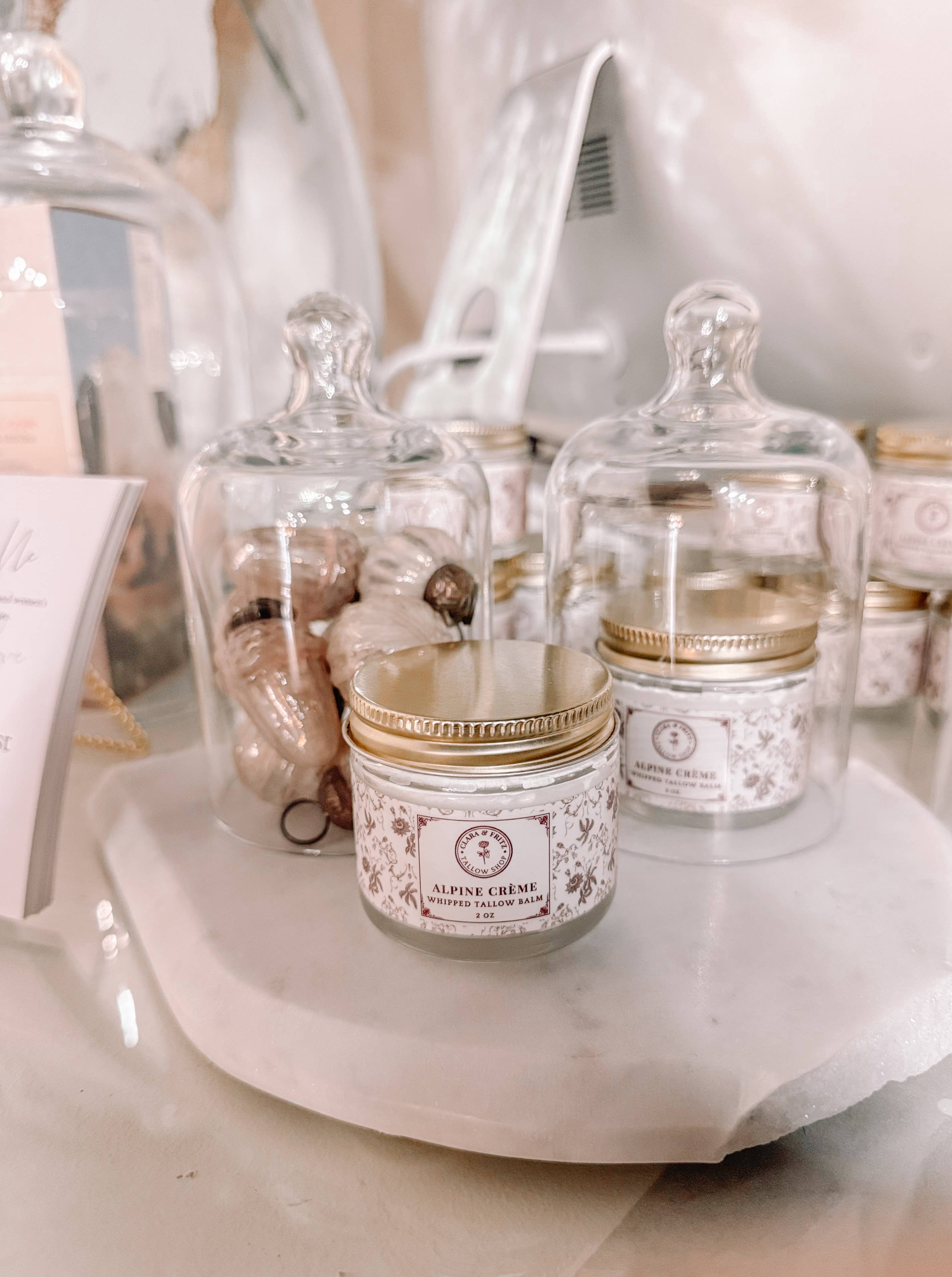 Scented Whipped Tallow Balms for Beautifully Well-Nourished Skin Deeply nourishing, naturally scented. Our whipped tallow balm is a luxurious, all-purpose moisturizer made from grass-fed tallow and skin-loving oils—whipped to a soft, cloud-like texture for easy, everyday use. Rich in vitamins A, D, E, and K, tallow closely mimics your skin’s natural oils, delivering deep, bio-available hydration that supports a healthy skin barrier. Available in five naturally scented blends, each crafted with pure essential oils to elevate your routine and leave your skin feeling soft, supple, and lightly fragrant. Full Size: 4 oz. Perfect for hands and body—wherever your skin needs a little extra love. Scented Whipped Tallow Balm Scents: * Amelia Vanilla. Ingredients: grass-fed beef tallow, *cold-pressed olive oil, vanilla botanical extract; *certified organic. * Orange Cream. Ingredients: grass-fed beef tallow, *cold-pressed olive oil, *sweet orange essential oil, vanilla botanical extract; *certified organic. * Darcy Frankincense and Cedarwood. Ingredients: grass-fed beef tallow, *cold-pressed olive oil, frankincense essential oil, cedarwood essential oil, *lavender essential oil, helichrysum essential oil; *certified organic * Pemberley Orange and Lavender. Ingredients: grass-fed beef tallow, *cold-pressed olive oil, *sweet orange essential oil, *lavender essential oil, ylang ylang essential oil; *certified organic * Avonlea Chamomile and Lavender. Ingredients: grass-fed beef tallow, *cold-pressed olive oil, chamomile essential oil, lavender essential oil, frankincense essential oil; *certified organic Looking for 2 oz? Darcy, Pemberley, and Avonlea are in the Signature Scent Trio, a floral bouquet inspired by literary romance and landscapes, and bundled with 15% savings. These statements have not been evaluated by the FDA. Scented Whipped Tallow Balm product not intended to diagnose, treat, cure, or prevent any disease.