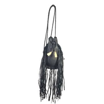 Gypsy Bag in Soft cow hides wit Long fringes and matching length glass bead strings. It is fully lined and available in Black, Brown & Tan