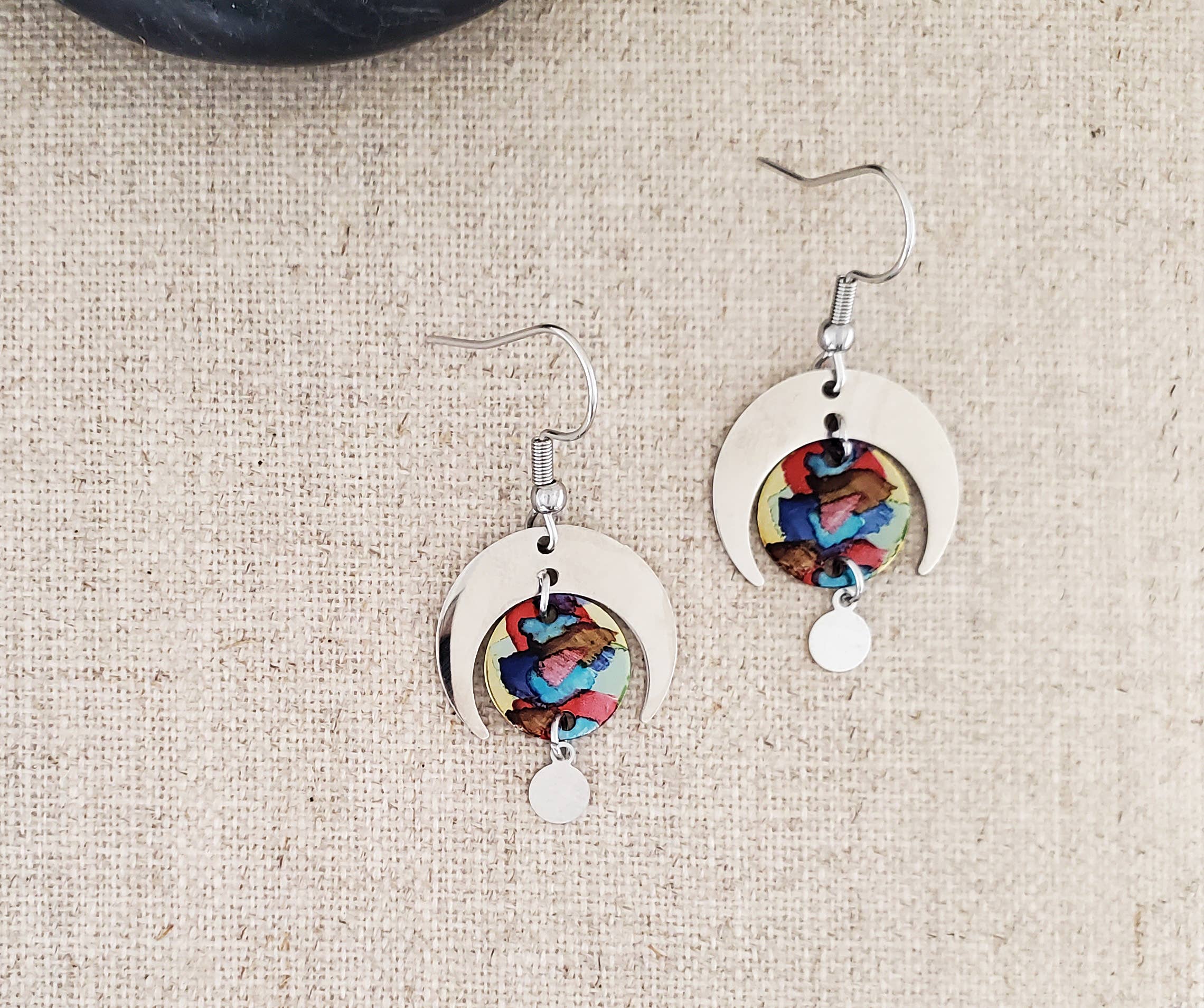 Craft Beer cans repurposed! A variety pack of 12 pairs of up-cycled earrings show the art of the cans in a completely new light. These photos represent the various unique styles of what you will receive. A mix of long. medium and short earrings to delight your customers. This collection has a focus on PNW craft beer as well as other beers, ciders, and water containers with great designs. I enjoy working with the amazing art found on these cans, which is constantly changing. That means that every order you make will be different. Hooks are 925 sterling silver or 925 sterling gold. I also include earring gift bags for you to use in your shop. (Note that the display stand is not included; you can purchase for less than 20 dollars at major online retailers.) Selling points for upcycled/repurposed earrings: Affordable Lightweight Asymmetrical and whimsical styles One-of-a-kind Uniquely PNW Eco-friendly These are created with small discs on both sides for stability and style.
