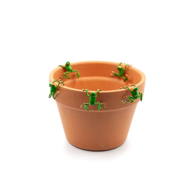 These adorable rings are perfect for as a cute plant decoration! A perfect addition to your garden inside or out! Can also been worn as a ring on your fingers as well! Totally Adorable! The rings are adjustable, the legs of the frogs are malleable so they can be made bigger or smaller. These tree frogs come in green and blue. Sold in sets of 10, with 5 of each color.