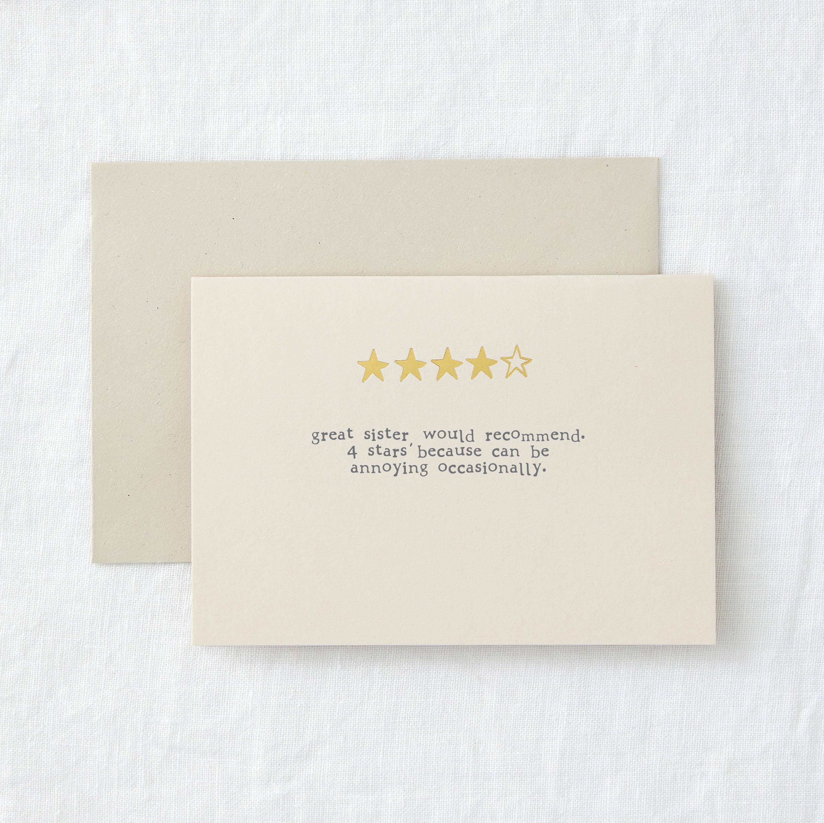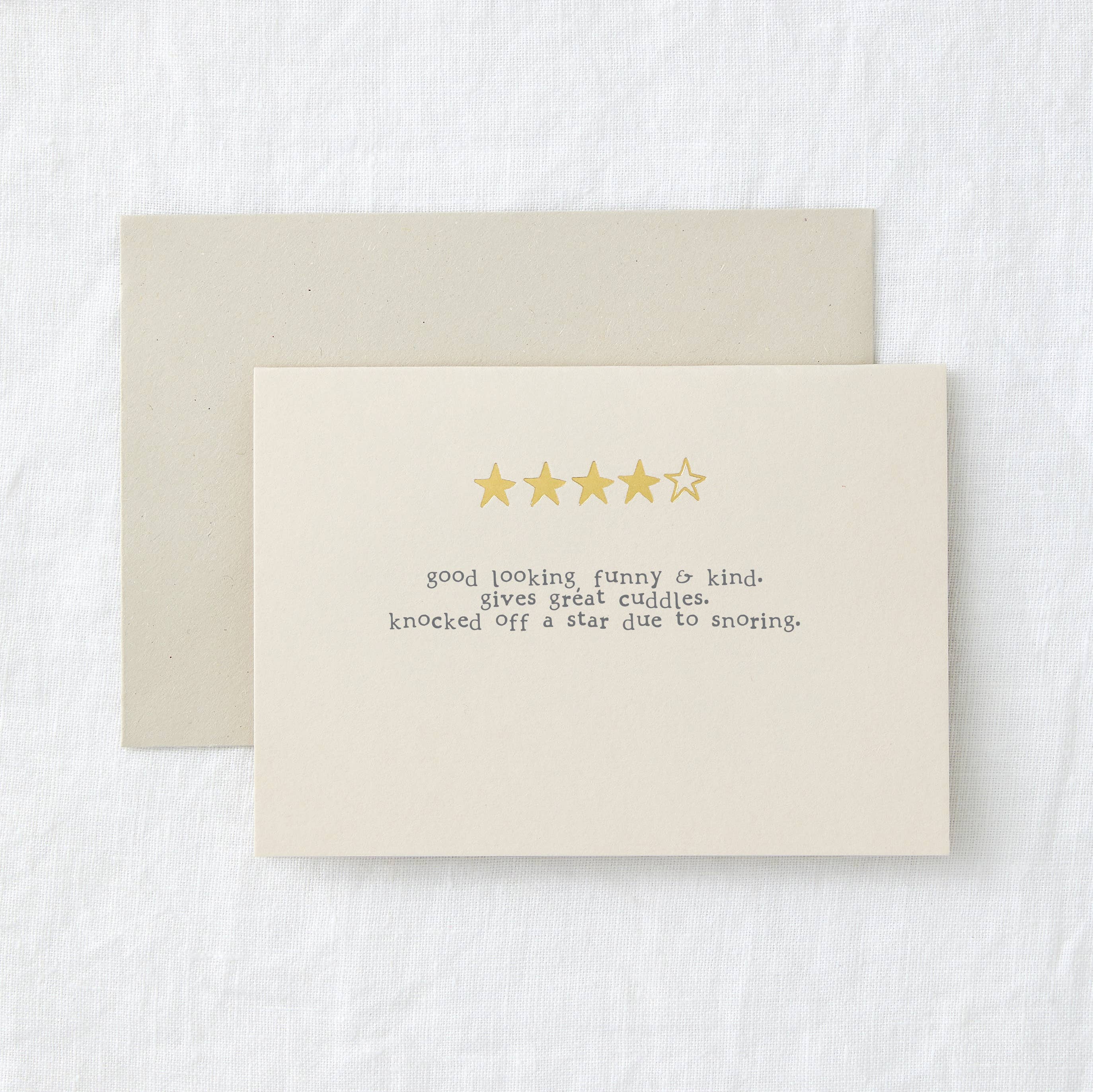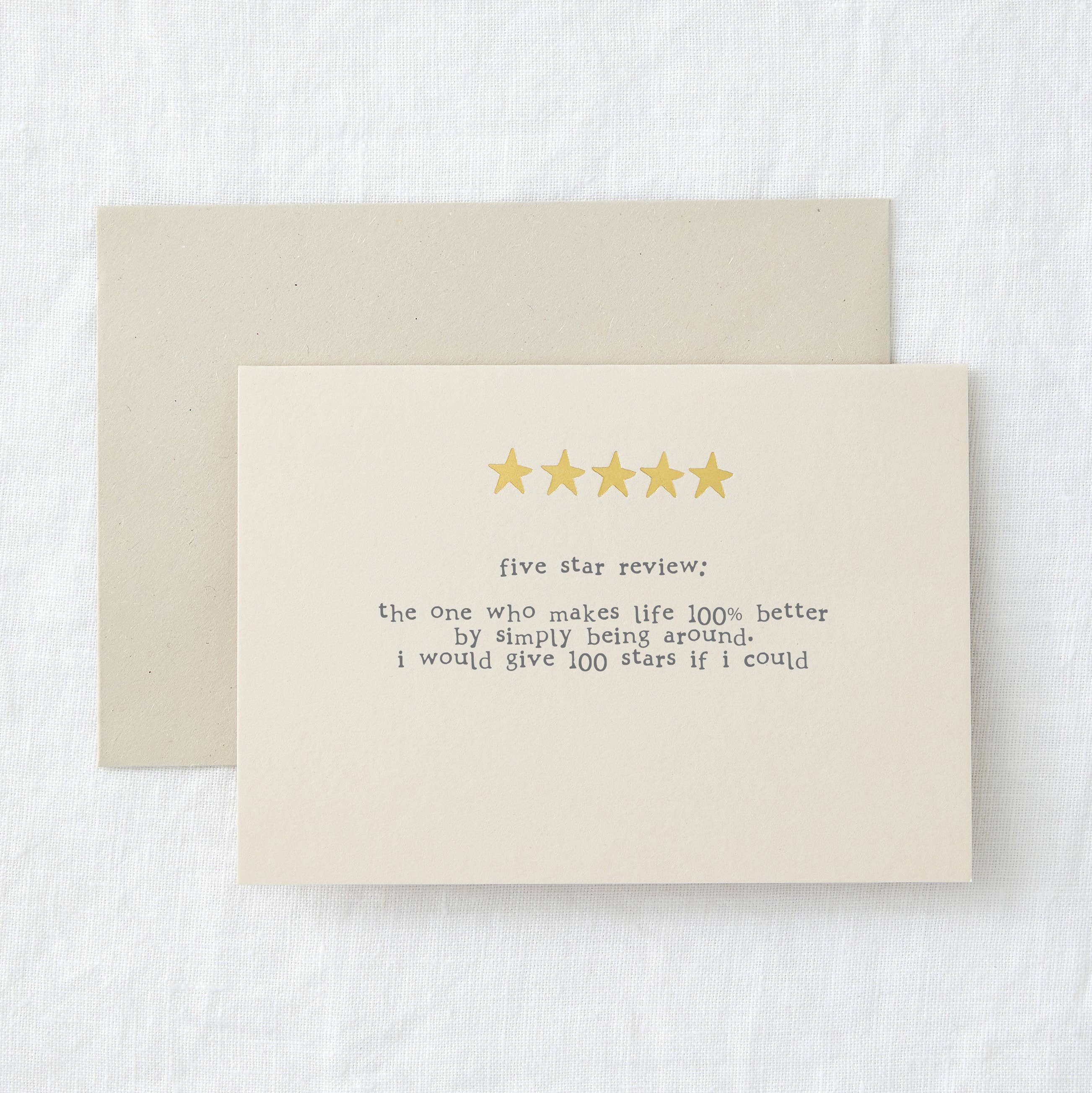 Our range of review greeting cards are hand foiled on a 1980's hot foil press. They will make your customers laugh out loud. Hand foiled onto card & accompanied by a recycled envelope. A6 in size (104 x 148mm) Arrives in compostable cellophane bag. Mindfully made in England. All cards are blank inside for your own message.