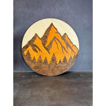 Our handmade Wooden Mountains Wall Art is crafted from a solid piece of Walnut, Cherry, & Maple wood and features an engraved mountain top design. Specs: | 3D Wooden Wall Art | Dimensions: 8" x 12" x 1.5" | Features Sawtooth brackets for an easy hanging experience | Currently Available in Mountain, Your State, & City Map designs!