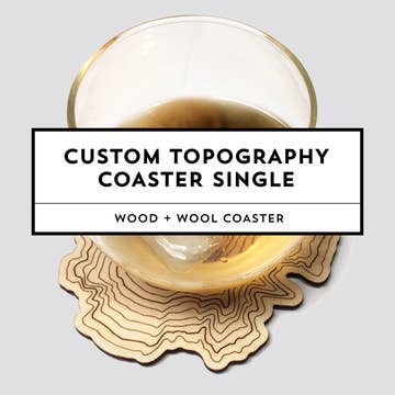 Show some love for your local geography with Custom Topography! This listing is for coasters to be resold as SINGLES. They are not boxed, but each coaster does come with a branded tag. // FEATURES • Coasters feature laser engraved topo of the landmark of your choice. Type your desired location in the customization box above. NOTE--Topography shows changes in elevation, so be sure your location isn't flat! • Made from poplar wood, 100% wool felt, and sealed with a non-toxic+food safe finish • Coaster size is roughly 5" x 4" x 0.125" (actual final size will depend on desired topography) • Each coaster comes with a branded Kraft tag • I will provide a digital mockup of your design for your approval prior to creating the finished coasters // ADDITIONAL DETAILS •• Above sea level only (no lakes or bodies of water) •• Feel free to contact me before placing an order to confirm the availability of your desired topography