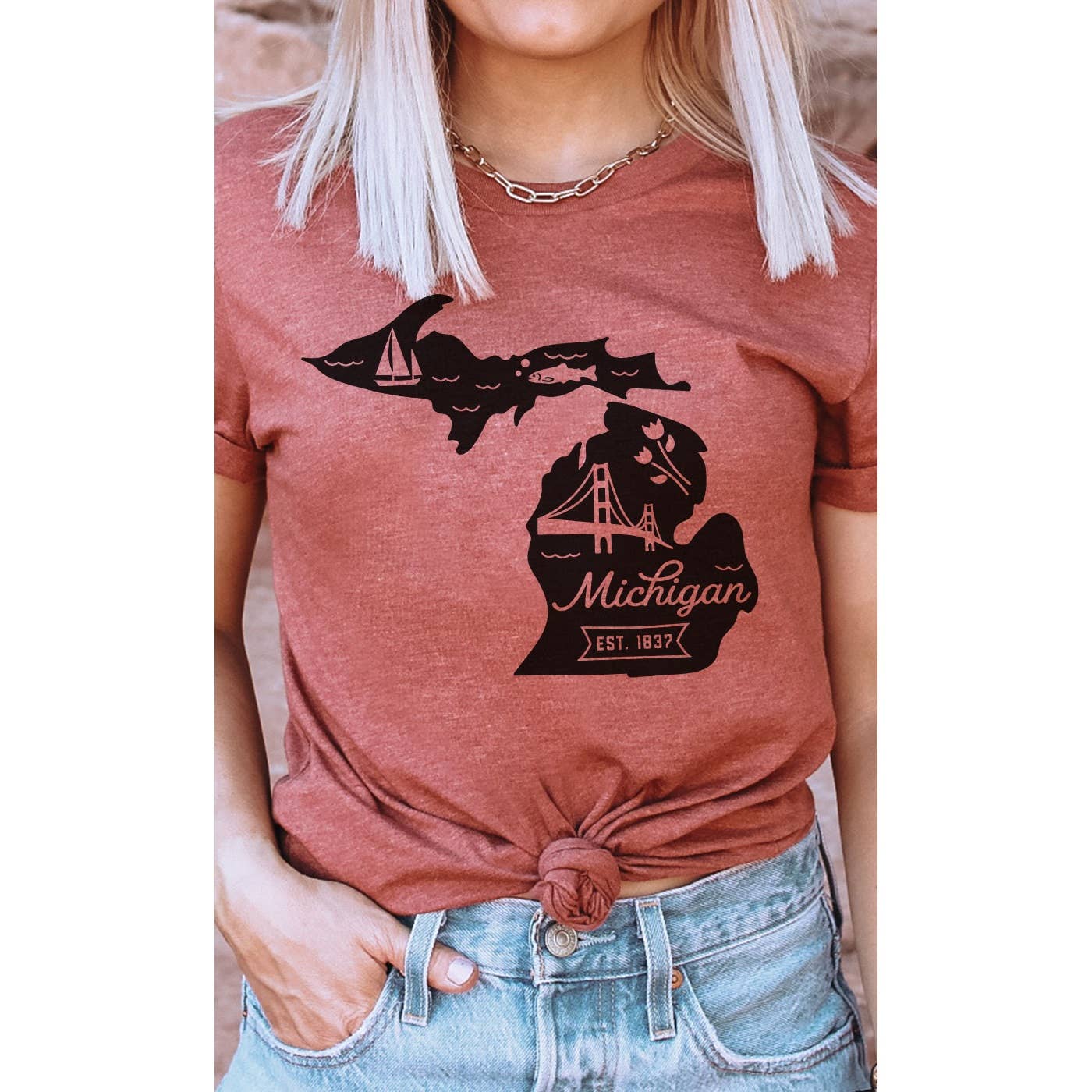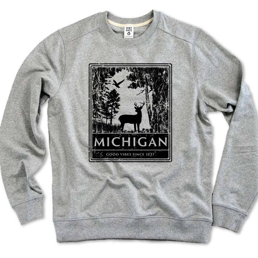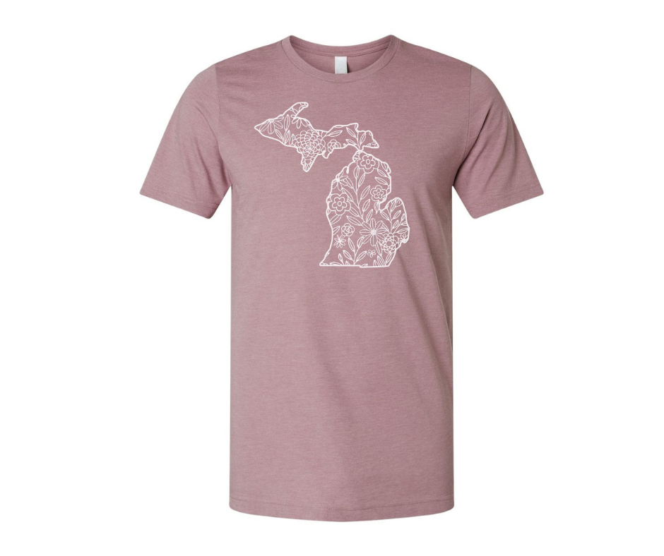 The state animal is the white-tail deer and it resides in every county in Michigan. * Unisex sizing * Soft heather tees with hand printed water-based inks * Designed/printed in Saginaw, MI. by Michigan Vibes * Heather Colors 52/48 cotton/polyester - White 100% cotton * Wash, rinse, enjoy Michigan and repeat
