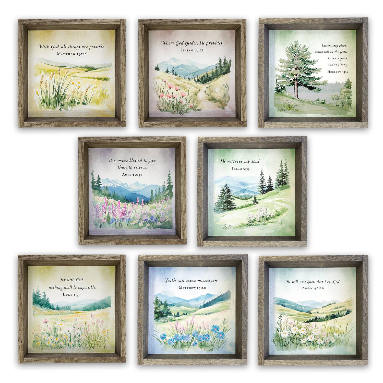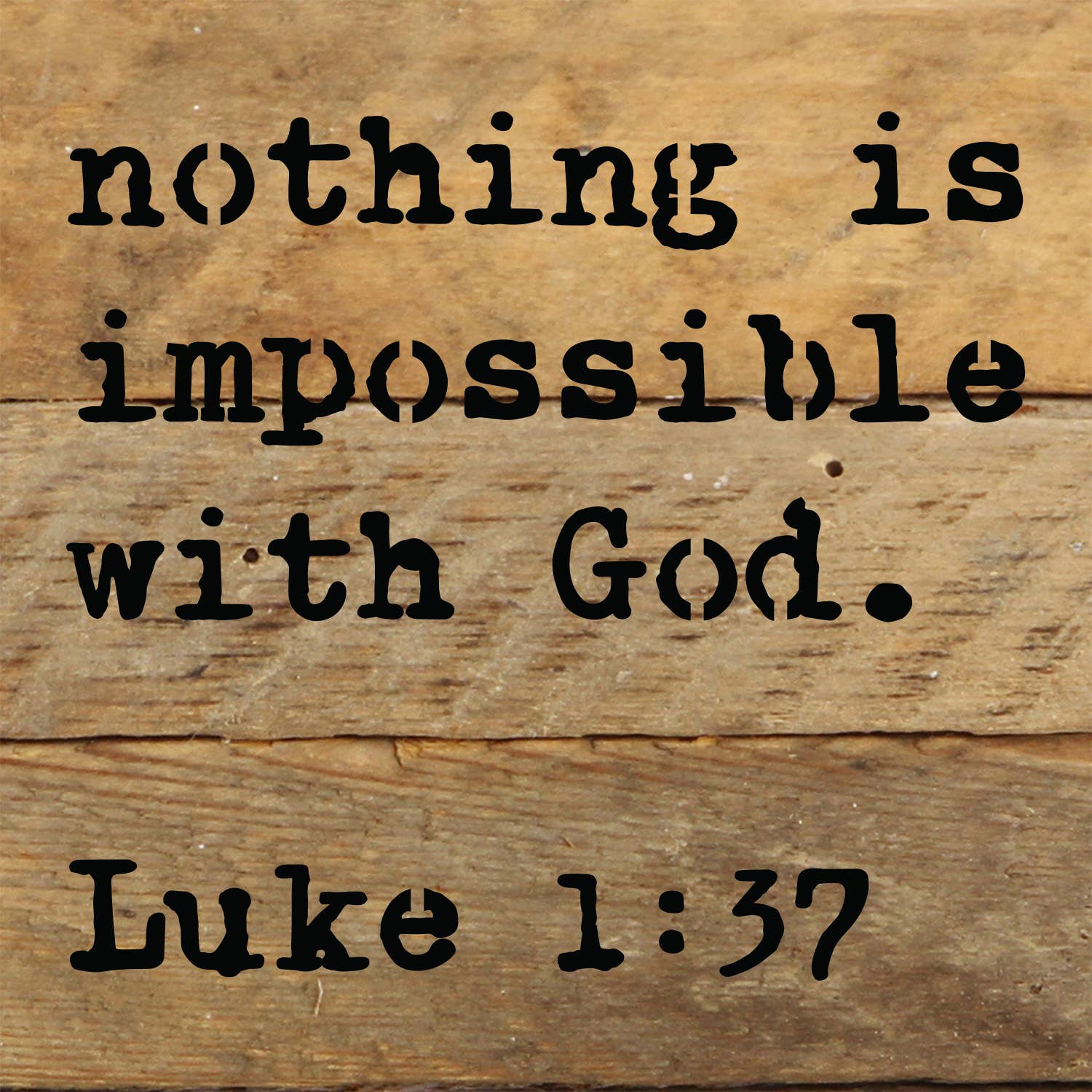 Infuse your home with inspiration through our uplifting word sign that declares "For with God nothing shall be impossible. Luke 1:37." Written in a soft white cursive font against a soft green chalkboard-inspired background. A delicate white silhouette of a vine adds a touch of nature to the design. Hang it in your living room, creating an atmosphere of trust and belief. • Printed with vivid colored inks on cotton canvas mounted on wood • Solid hardwood frame in shown stain colors • Sustainable American sourced wood • Made in the USA in our Utah studio • MINI 6" tall x 6" wide x 1.25" deep w/ 1/4" thick frame • SMALL 11" tall x 11" wide x 1.25" deep w/ 1/4" thick frame • MEDIUM 15" tall x 15" tall x 1.5" deep w/ 3/4" thick frame • LARGE 22" tall x 22" tall x 1.5" deep w/ 3/4" thick frame • Signs may have +/-1" variations • All signs can stand on a shelf or table (Medium & Large can also hang on a wall) • Farmhouse style frames have small rustic imperfections that make them unique