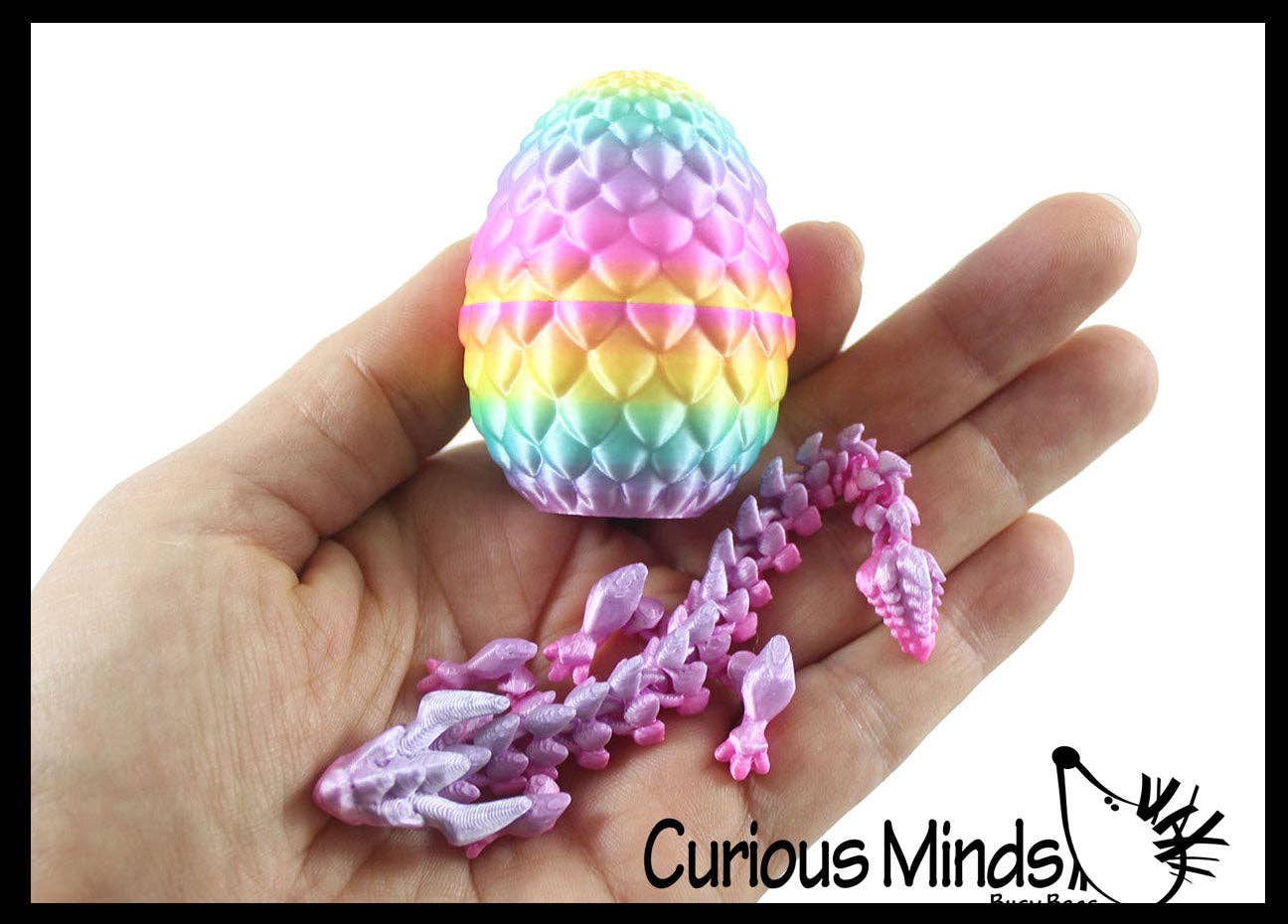 Small Eggs are roughly 4" tall and filled with 2 dragons, Medium Eggs measure in around 5.75" tall and hold 3 dragons, and Large Eggs are about 7" in height containing 3 dragons; the bigger the egg, the bigger the dragons. For all sizes, the color of the dragons will be coordinated with eggs' own hue. All orders will be fulfilled with a random array of varying colored eggs. While the egg color and the dragon color will coordinate, the types of dragons concealed within each egg are an entirely unpredictable surprise. With each unveiling, you'll be treated to a unique assortment of dragon breeds. Every hatch is a new adventure, just twist the top to unlock your dragons! Every egg and dragon are crafted with precision, each one is its own mini masterpiece. Eggs are designed by Cinderwing3D, Dragons designed by Cinderwing3D, Torua3d, and Flexi Factory, all printed by LNZ Custom Design.