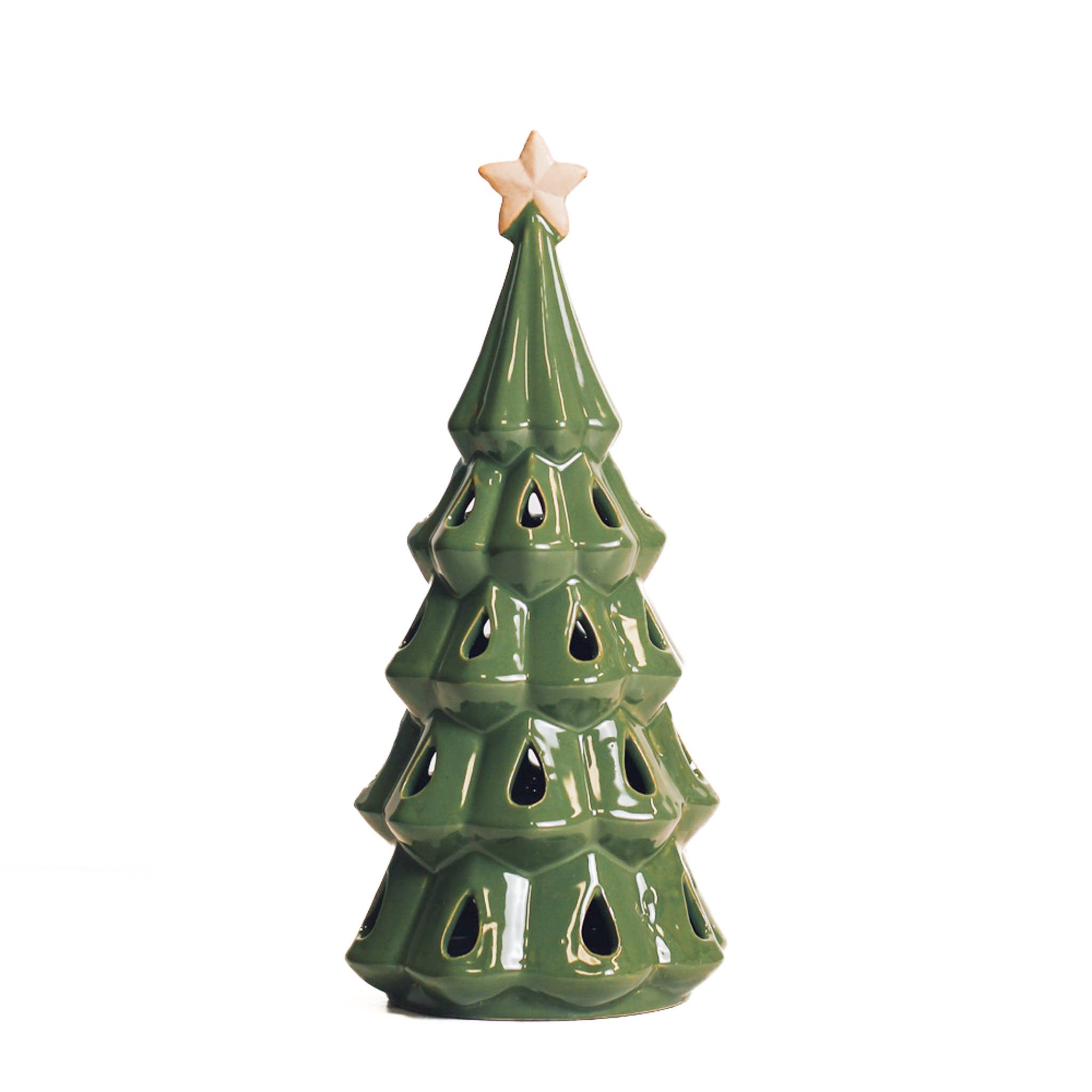 CLICK HERE FOR MORE INFORMATION Introducing the Whimsical Holiday Ceramic Tree, a delightful handcrafted goodie that brings joy and magic to your seasonal decor. This charming tree is crafted from high-quality ceramic, glazed in our signature studio made glazes in shades of green. The highlight of this enchanting tree is its magnetic star topper, an effortless yet playful addition that easily snaps into place, giving the tree an extra sparkle. Whether displayed on a mantel, a dining table, or a festive nook, this whimsical ceramic tree with its charming magnetic topper is sure to capture the heart of the season and become a treasured holiday favorite for years to come! X Small Measure 2-3" Small Measure 3-4" Medium Measure 4-5.5" Tall Measure 5.5-7" *Height is measured from the base of the tree to the tip of the star*