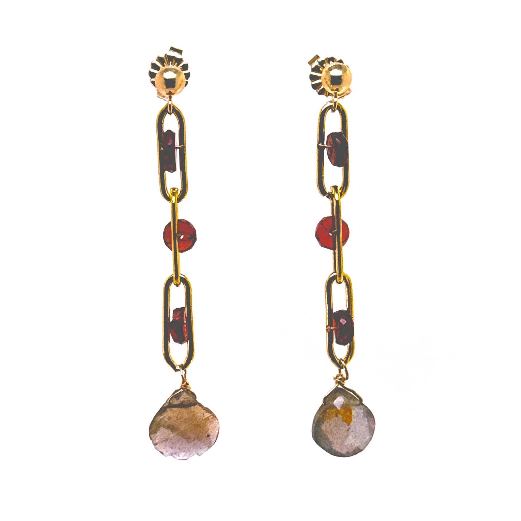 Materials: Swarovski crystals, glass cabochons. Metal: 24k gold electroplated over brass. Size: 1.5 inches long. Lever back. Handmade in our NYC studio. Complimentary gift wrapping.