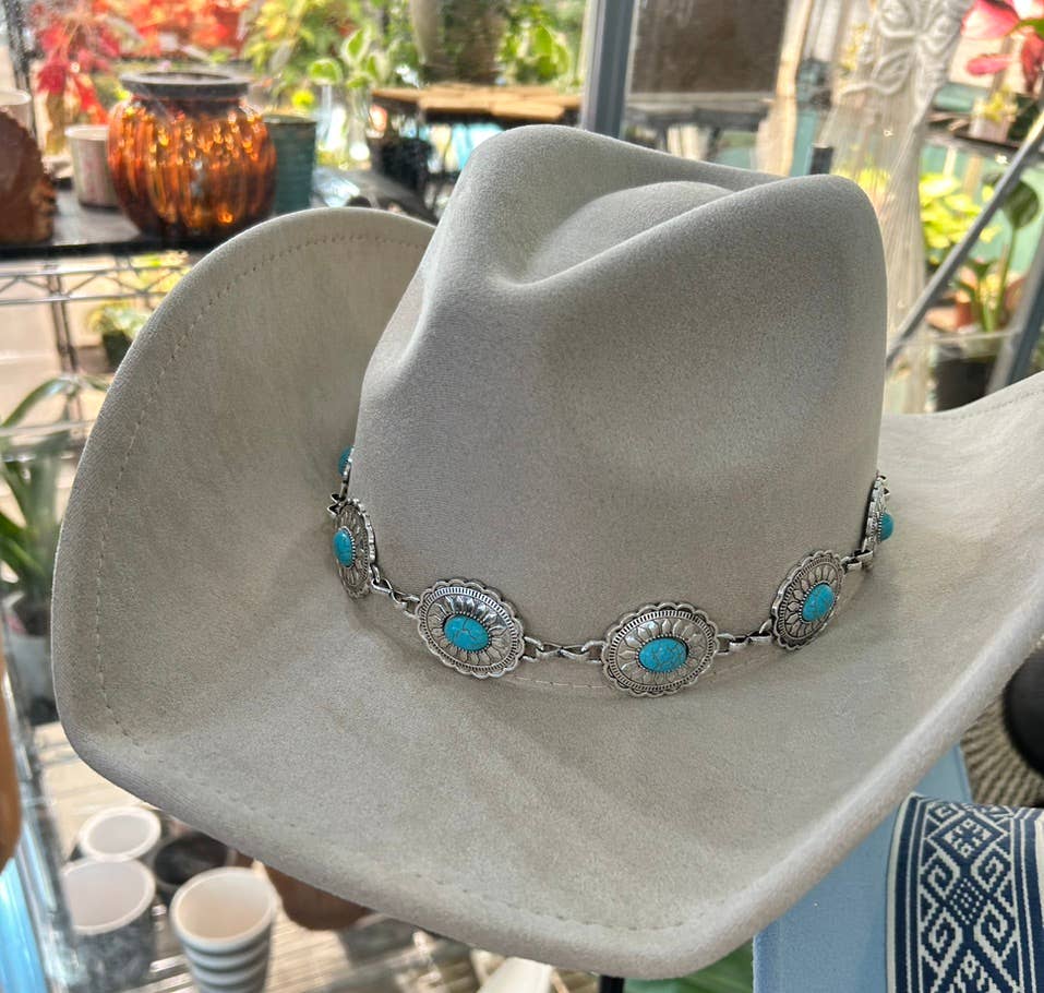 Turquoise Oval Stone Strap Western Cowboy Hat