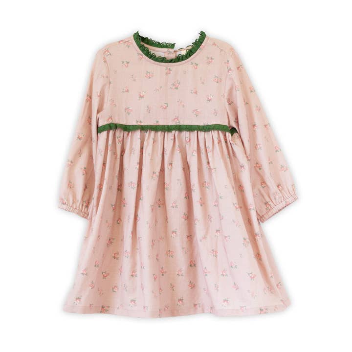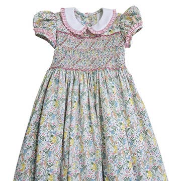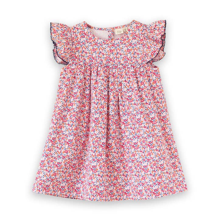 A sweet blend of vintage and modern, the Ana dress is one you’d like to bring out for every special occasion.    The charming style features pin tucks, collar and sleeves with ruffles and picoting detail, and a wide skirt for the best twirls. The style this season comes in two lovely prints - summer posy print mimicking a gorgeous garden and the meadow floral print reminiscence of lush untamed fields of flowers. Get them both as they are sure to be favorites! * 100% cotton * Machine wash on gentle cycle. Tumble dry low. Â